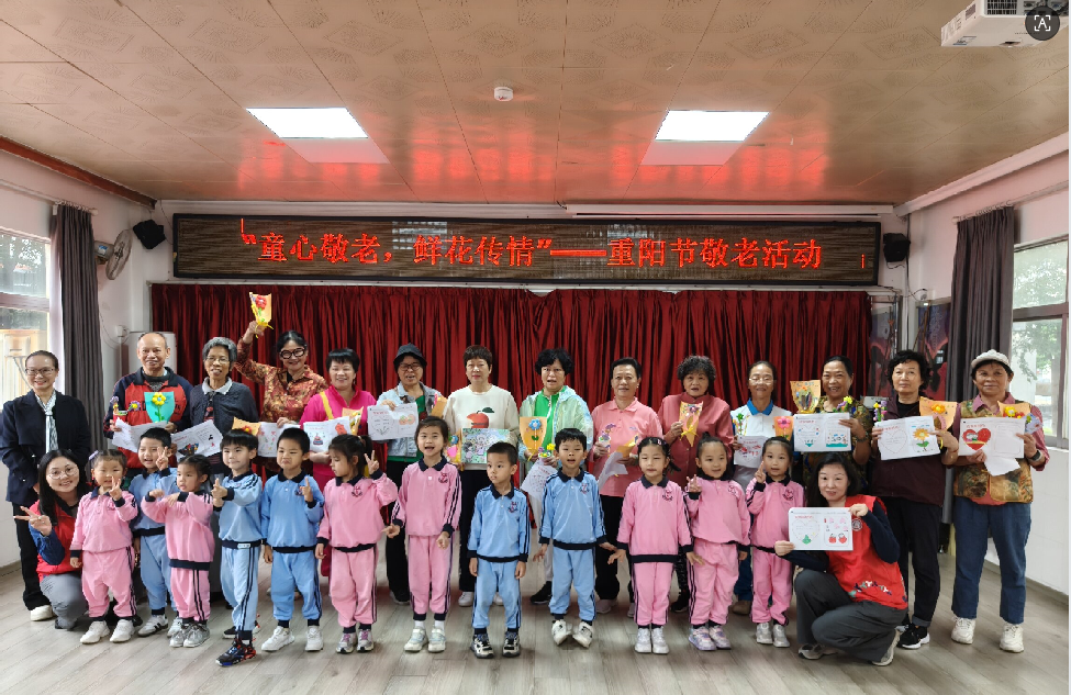 罗湖家园网讯:岁岁重阳,今又重阳。为弘扬中华民族尊老、敬老、爱老、助老的传统美德,10月28日下午,一场主题为 “童心敬老,鲜花传情” 的重阳节敬老活动在怡景社区党群服务中心温馨开展。丽晶幼儿园的小朋友们与社区老年居民齐聚一堂,用舞蹈、手工礼物和互动的方式,为怡景社区的15位老年人送上了一份充满童趣与暖意的节日祝福。
