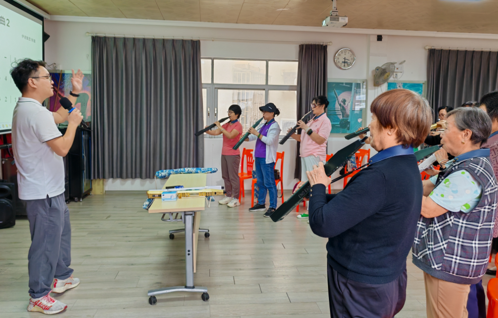 罗湖家园网讯:怡景社区党群服务中心开展长者电吹管学习小组,邀请专业老师带领长者进行电吹管乐器认识、指法学习、曲目练习等,通过电吹管学习丰富社区老年人精神文化生活,提升艺术修养