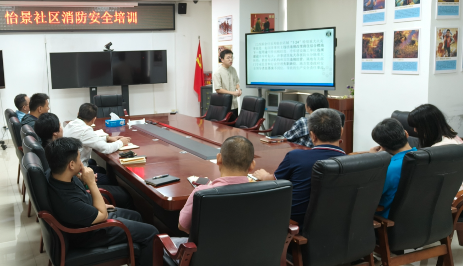 罗湖家园网讯:为聚力共建平安社区,2025年11月12日,怡景社区于峰景台大厦二楼会议室专项召开了消防安全培训会议。本次会议集结了全体综合网格员与辖区物业单位这两大安全保障基石,旨在全面提升队伍的消防管理与应急响应能力。