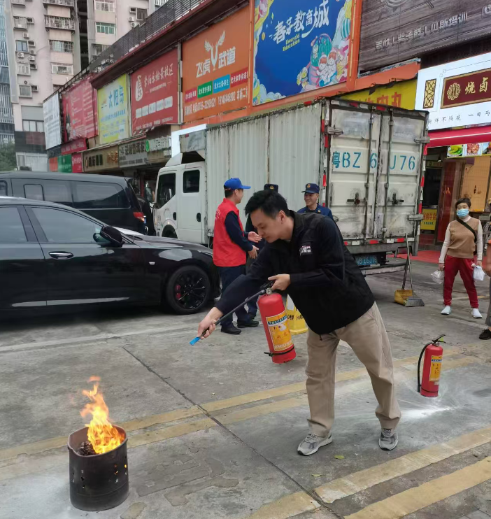 罗湖家园网讯:11月18日上午8时,怡景社区联合黄贝岭小型消防站在荷花市场组织开展了“消防宣传月”主题活动。活动通过消防器材使用演示、灭火实操演练、应急逃生知识讲解等多种形式,向荷花市场商户和居民普及防火、灭火及应急疏散技能,提醒大家注意日常用电用火规范,进一步增强安全意识,共同筑牢市场消防安全防线。
