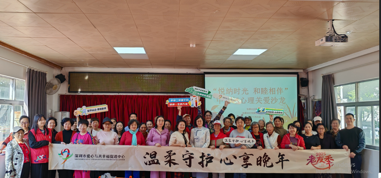 罗湖家园网讯:为提升社区中老年群体心理健康水平,树立积极健康的心理状态,在怡景社区党委的指导下,怡景社区党群服务中心社工联合深圳晚报社、深圳市爱心与共幸福促进中心开展“悦纳时光,和睦相伴”——中老年心理关爱沙龙,活动共吸引50多名社区中老年群体参加。