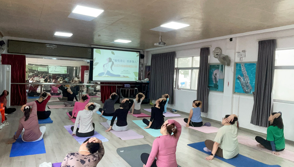 当代女性常被久坐办公带来的肩颈僵硬、生活琐事引发的紧绷感裹挟,身心放松需求迫切。为此,12月3日下午,在怡景社区党委的指导下,新现代驻怡景社区党群服务中心社工联合深圳市罗湖区健身瑜伽协会,精准推出“瑜悦身心 优雅伽人”女性瑜伽减压小组,以“定制化课程+社群陪伴”双模式,为社区女性送上专属关怀。本次小组共设6节课程,首场“肩颈理疗”课程率先开课,20位社区女性共同开启了一场治愈身心的瑜伽之旅。