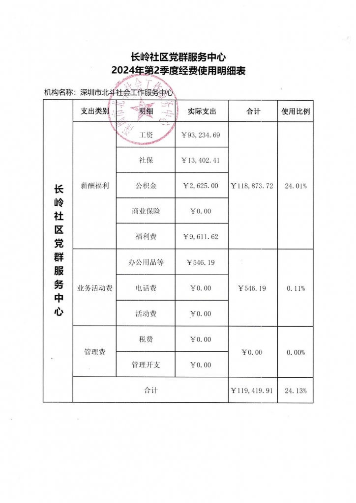长岭社区党群服务中心2024年第2季度经费使用明细公示