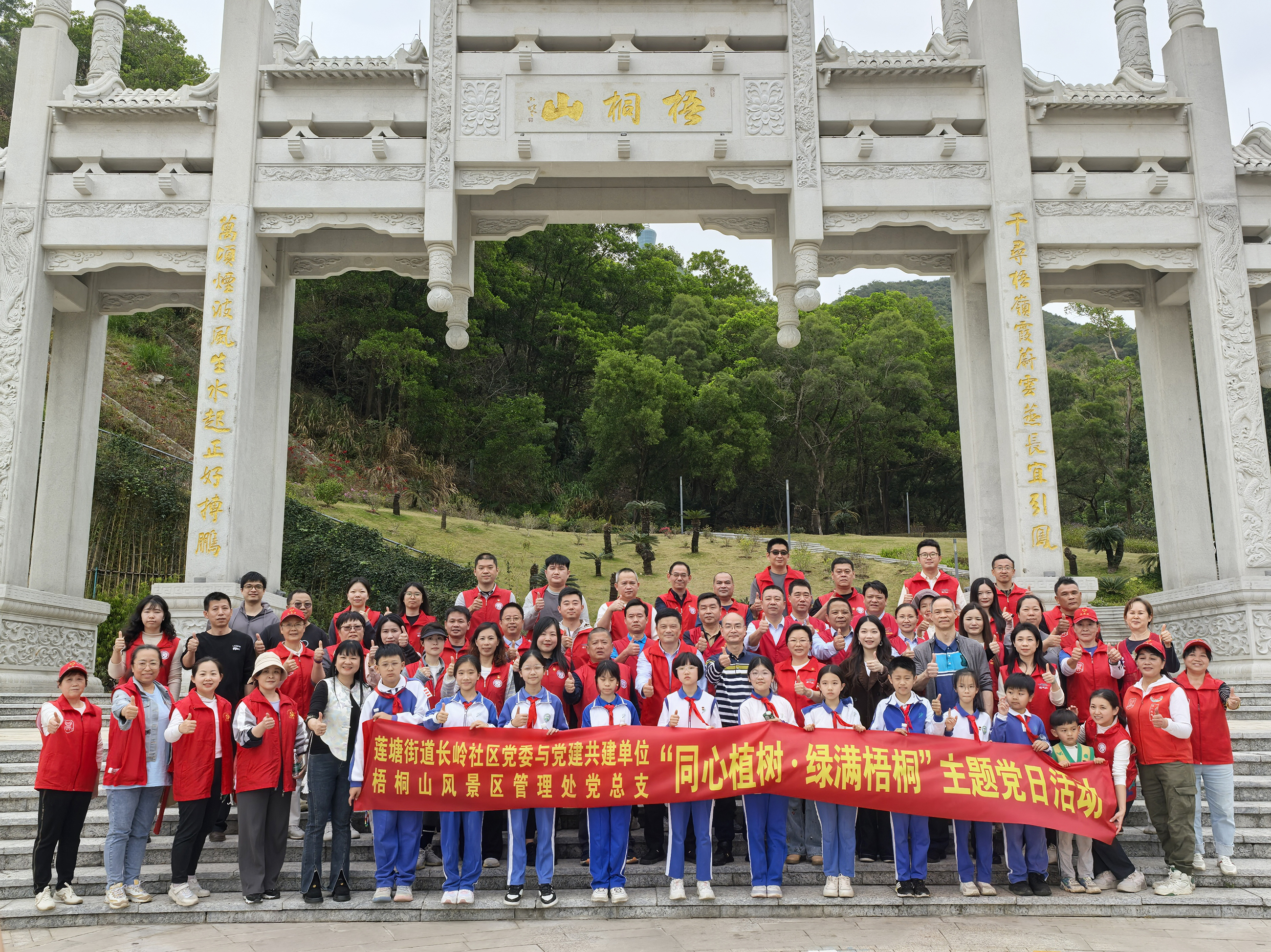 长岭社区讯:春回大地万物苏,植树添绿正当时。值此习近平总书记提出“绿水青山就是金山银山”理念二十周年之际,莲塘街道长岭社区党委携手梧桐山风景管理处党支部等共建单位,于2025年3月11日第47个植树节前夕,在梧桐山南大门开展“同心植树·绿满梧桐”主题党日活动。