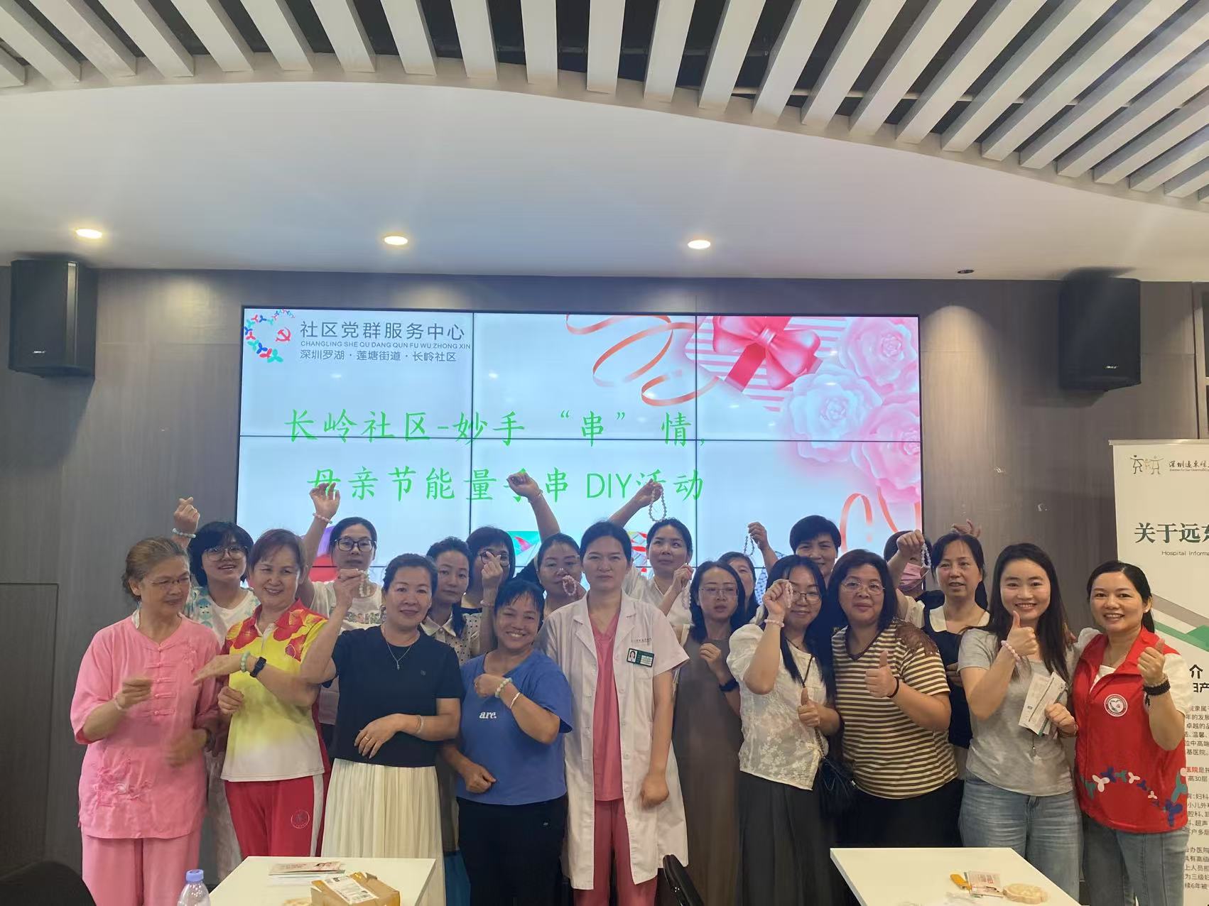 长岭社区讯:为提升社区女性健康意识,倡导科学防治疾病,2025年5月11日上午,在长岭社区党委的领导下,北斗机构驻点长岭社区党群服务中心社工携手远东妇儿医院举办了一场 “妙手‘串’情” 母亲节能量手串 DIY 活动,为社区女性送上健康知识与节日祝福。