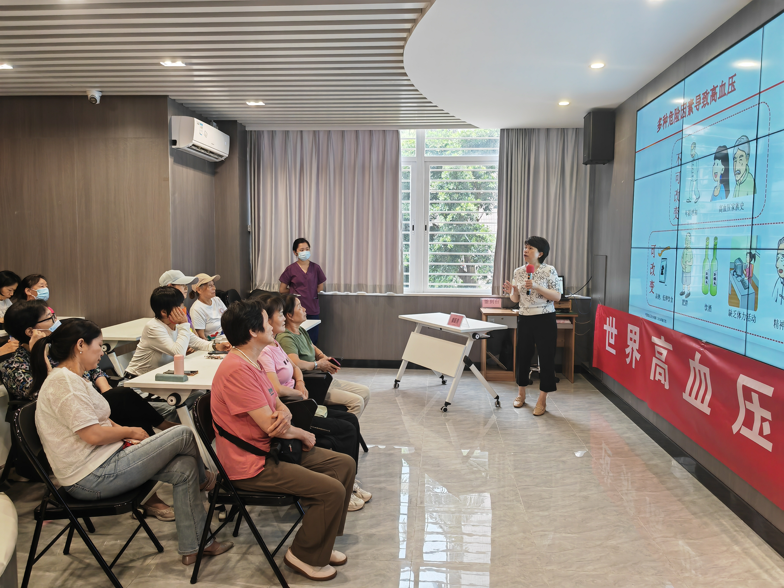 立足民生需求,长岭社区党委以第21个“世界高血压日”为契机,联合党建共建单位罗湖中医院心血管科党支部,将健康服务送到了群众家门口,创新采用“知识讲座与现场诊疗相结合”活动方式。活动中,心血管专家以中医“治未病”理念为核心,提出了“三控一调”的防控方案,即控制盐摄入、控制体重、控制情绪,并通过中药茶饮、穴位按摩等中医方法辅助调理。这种将中医养生智慧与现代健康管理相结合的创新实践,既体现了对传统文化的传承,又彰显了基层治理的现代思维。同时还为居民提供了血压监测、血管弹性检测及个性化专家问诊服务,实现了从知识普及到行为干预的全链条服务。