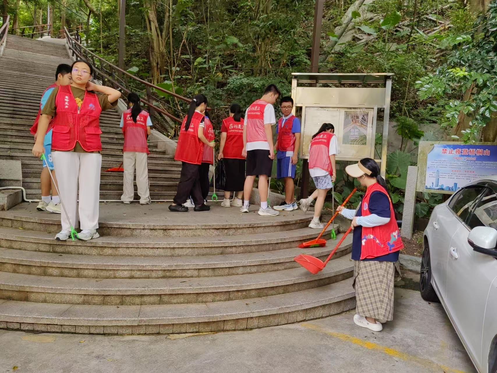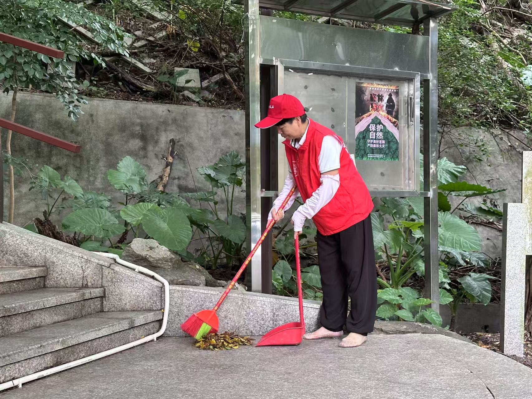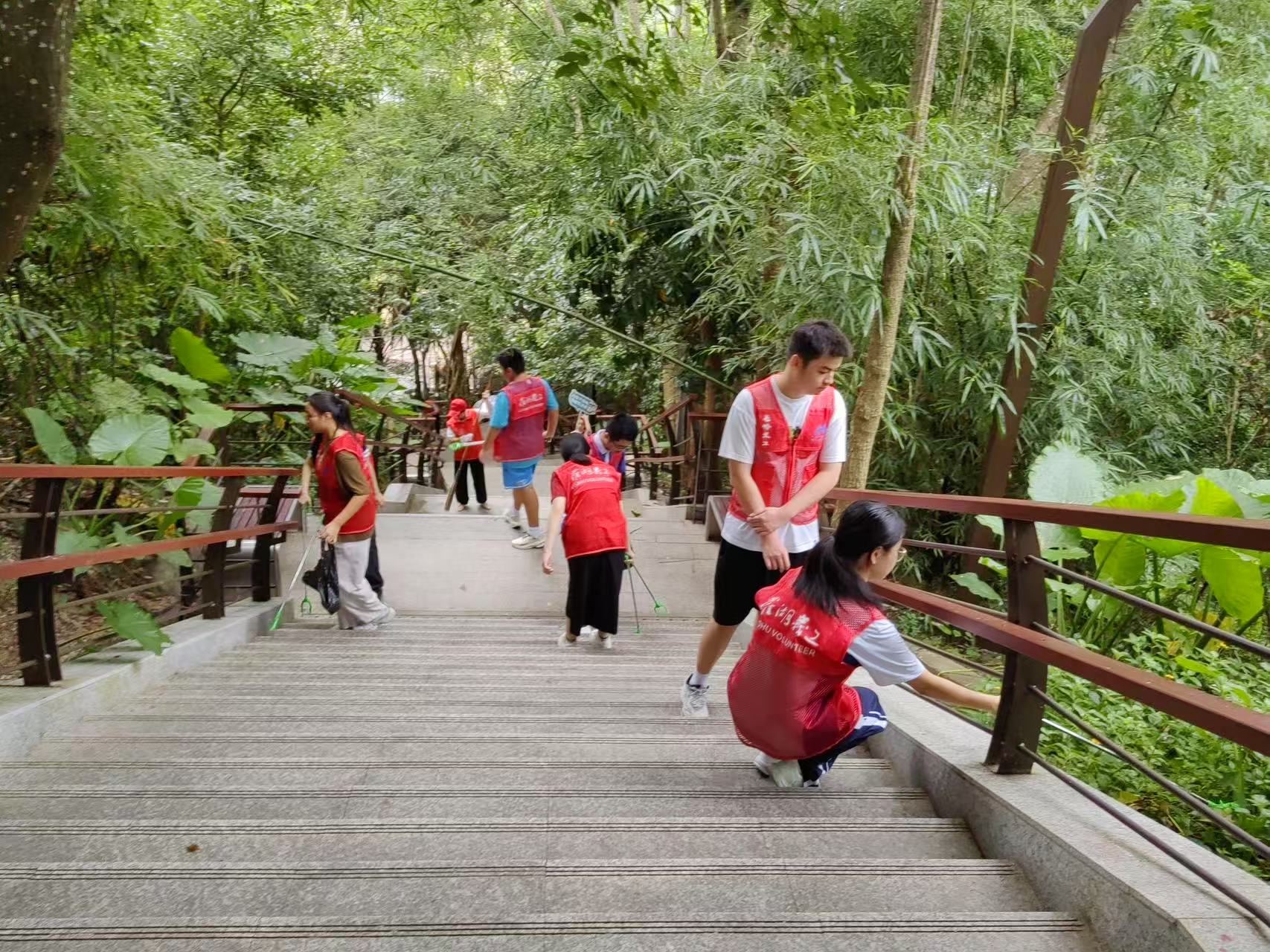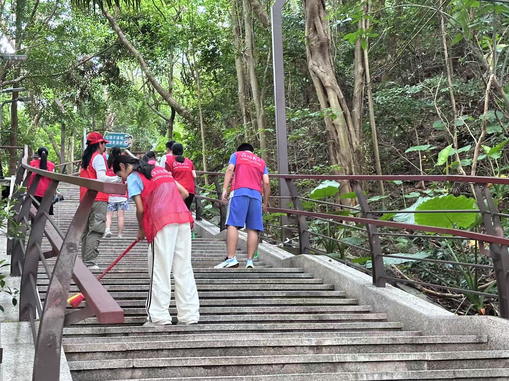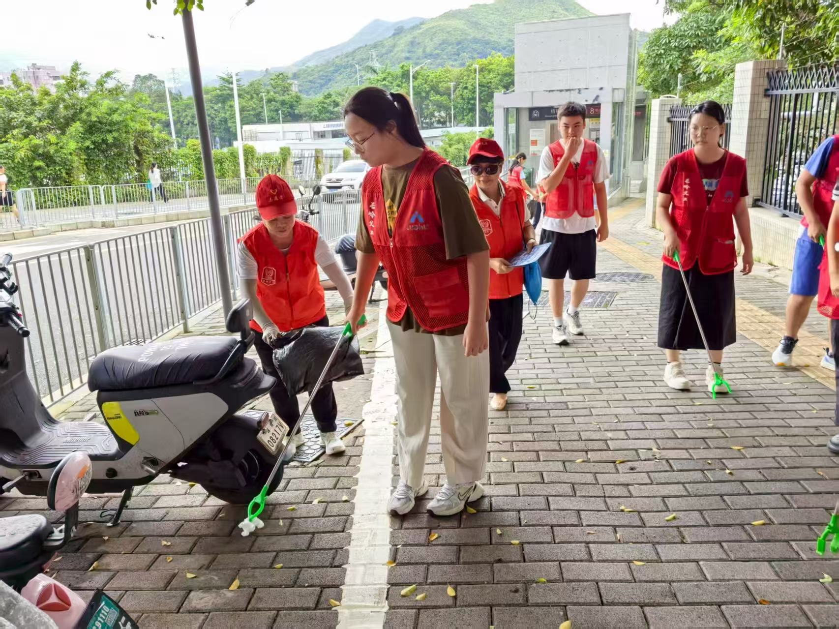 虽然炎炎夏日,志愿者们的热情却丝毫未减,早早来到公共阶梯处领取清洁工具。青少年志愿者们干劲十足,他们拿着夹子、垃圾袋,认真地捡拾着散落在草丛中的纸屑、塑料瓶,不放过任何一个卫生死角。一旁的长者志愿者们则充分发挥经验优势,耐心地指导青少年们如何高效清理顽固污渍,同时以身作则,弯下腰仔细清扫地面的烟头、落叶,用行动诠释着 “奉献、友爱、互助、进步” 的志愿精神。
