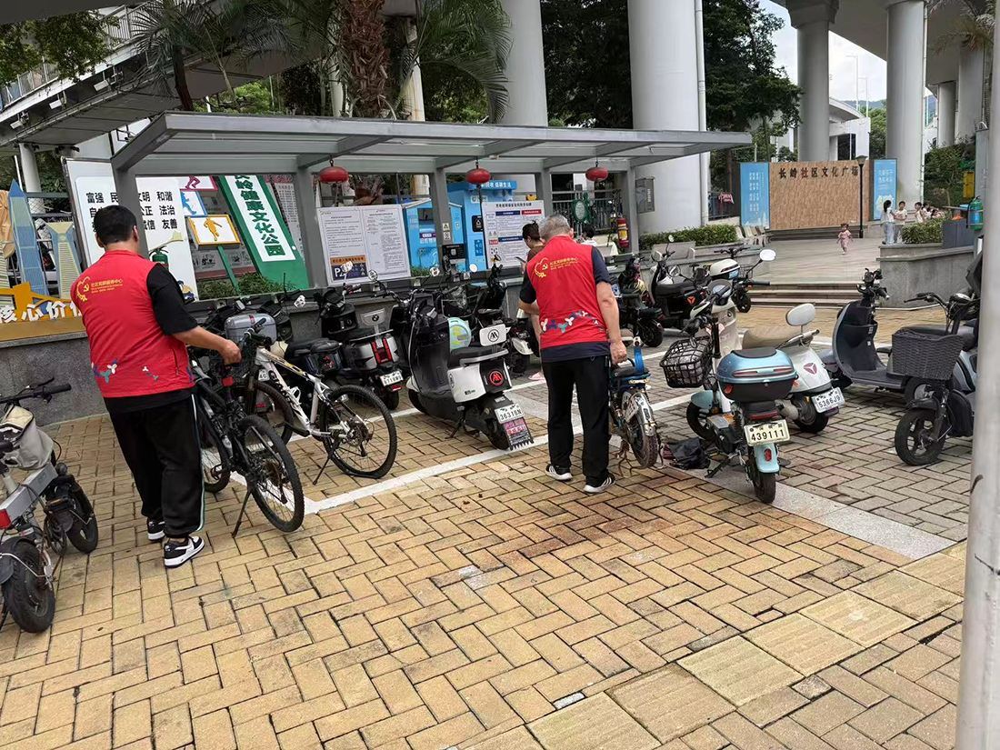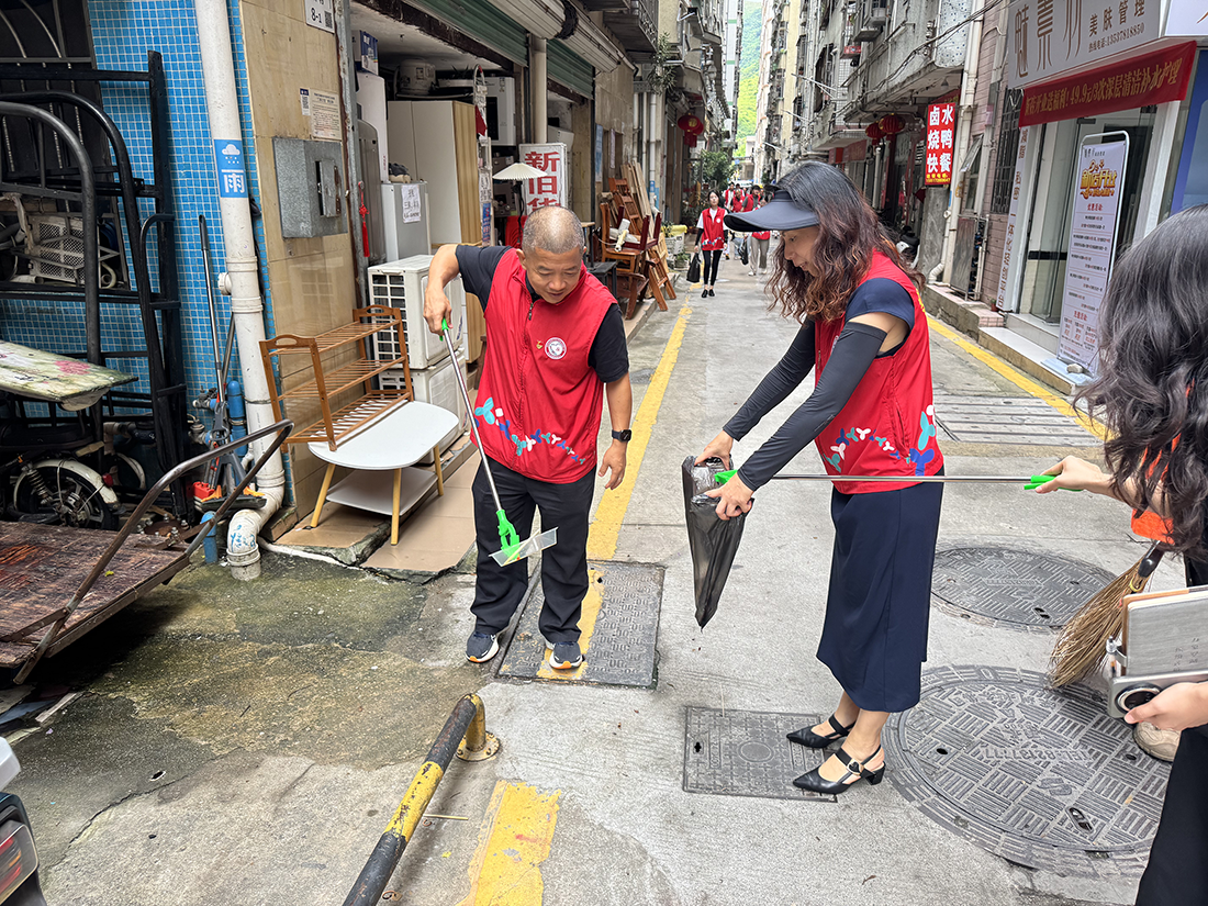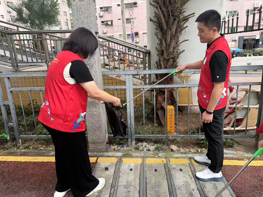 尽管当日天气闷热,但参与人员热情高涨,抵达点位后迅速投入工作。人员两两分组,分工明确,部分人员手持垃圾袋,部分人员配备清理夹,分散至社区各个角落。针对草丛、墙角等卫生死角,开展细致的垃圾捡拾工作,确保无遗漏;同时对重点区域开展拉网式排查,发现并整改安全隐患5处,规整乱停放车辆12辆。经过一上午的努力,社区环境得到显著改善。