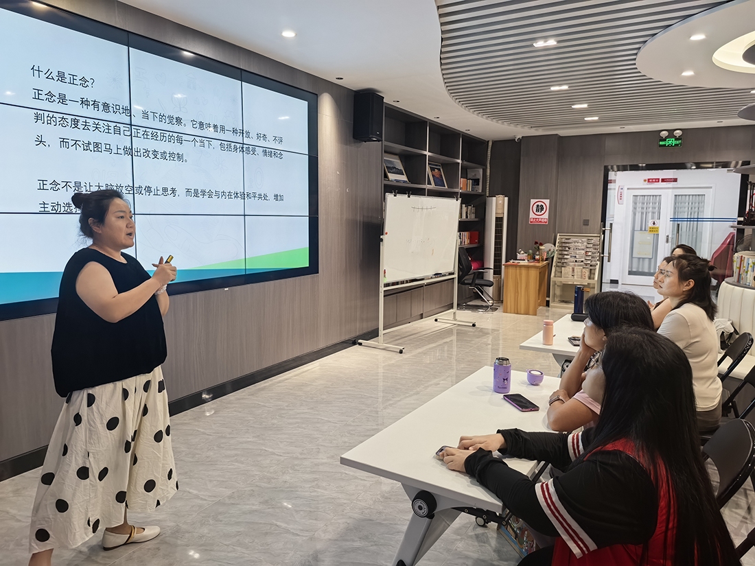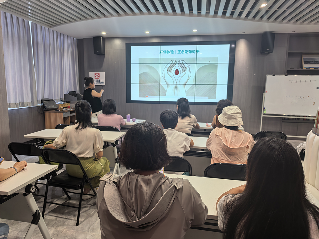 随后,讲师通过案例引导职工体验“存在模式”——专注当下感受、允许情绪自然存在、适当放慢节奏,让职工意识到,在应对情绪与压力时,“接纳”比“解决”更重要。“实用工具”环节是本次活动的“干货”重点。老师带领职工现场体验“三步呼吸空间”:先停下手中事,觉察当下的感受、情绪与想法;再将注意力集中到呼吸上,感受气流的进出;最后将觉察扩展到全身及整体体验,短短几分钟便让职工感受到内心的平静。
