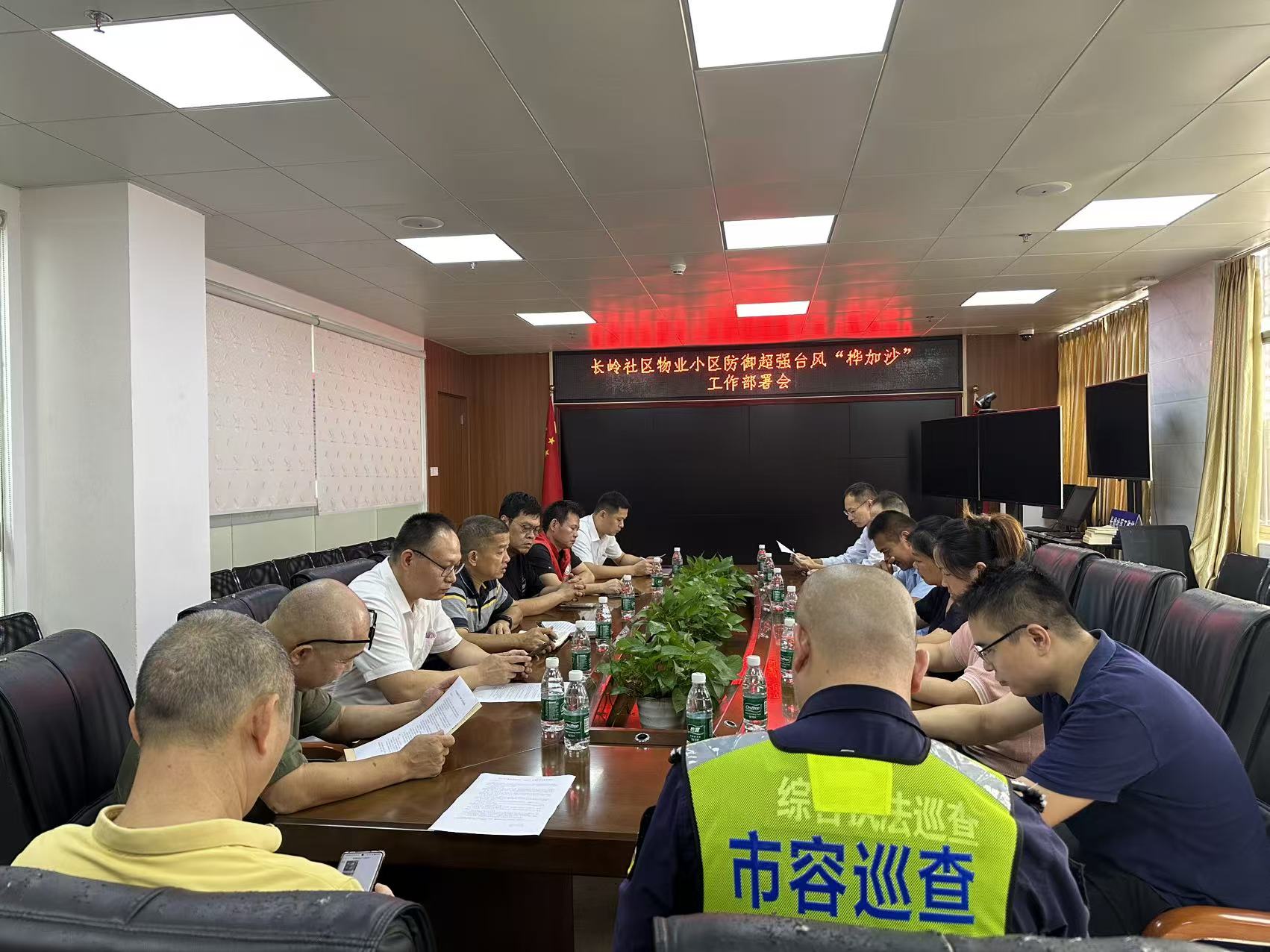 长岭社区讯:9月22日上午,长岭社区召开超强台风“桦加沙”防御工作部署会。社区党委书记唐少华主持会议,小区物业负责人、社区工作人员先后参会,全面部署防台防汛各项工作,确保辖区群众生命财产安全。