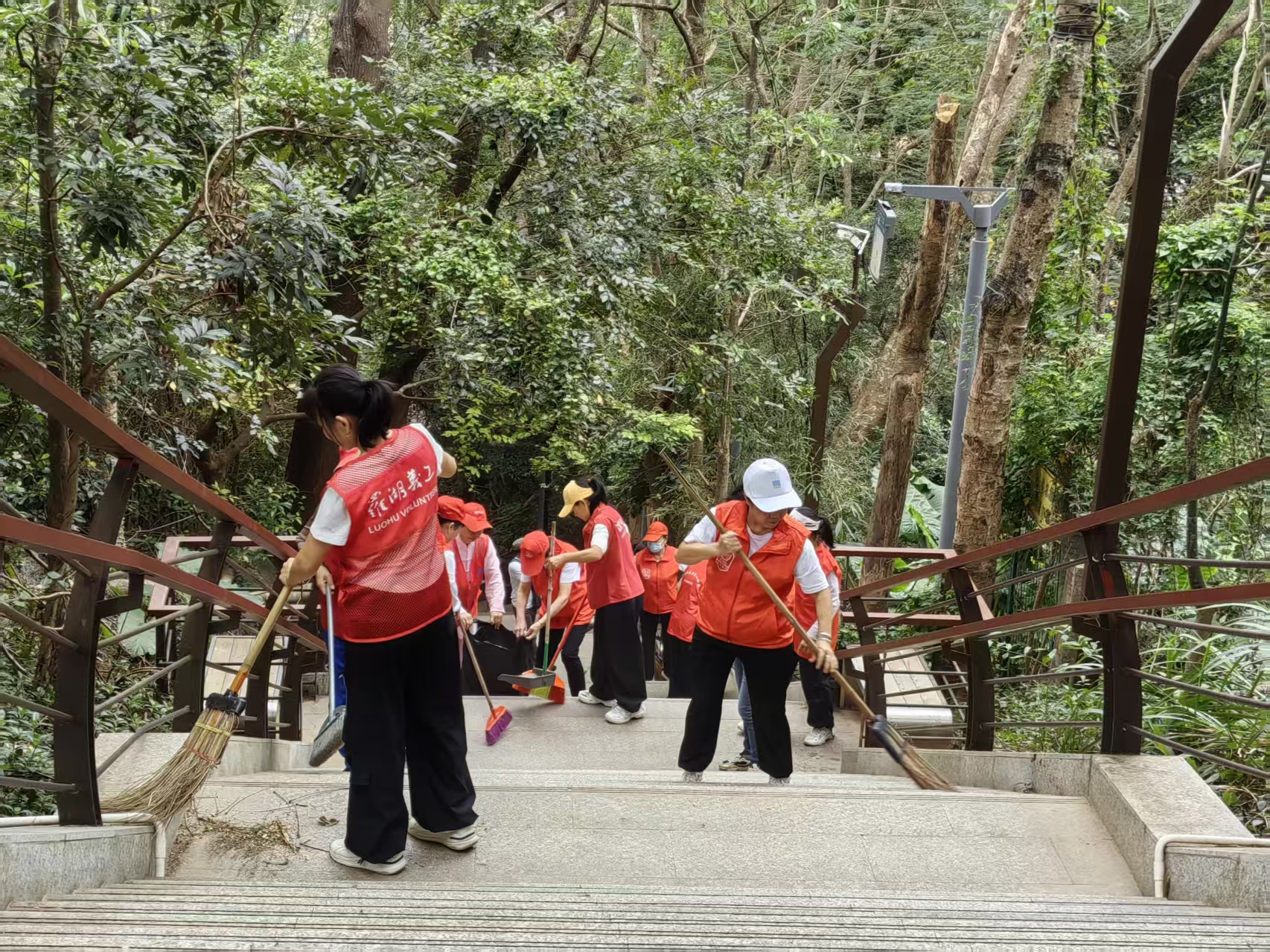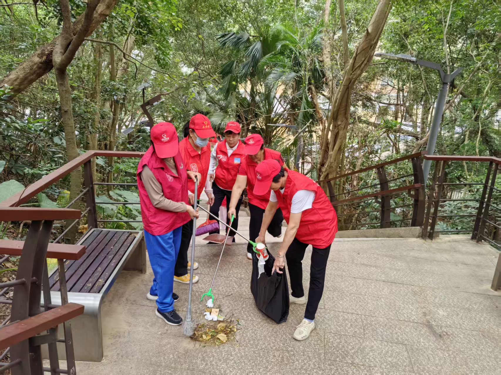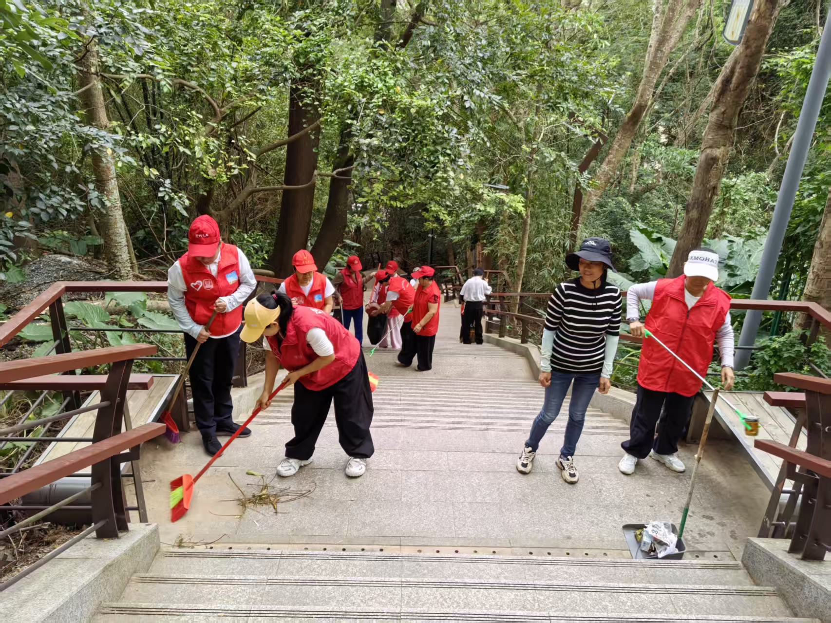 11月开始,天气骤冷,寒意袭人,但低温丝毫没有减退志愿者们的参与热情。活动现场,志愿者们身着志愿马甲,手持扫帚、簸箕、抹布等工具,迅速投入清扫工作。大家分工明确、默契配合,细致清理阶梯上的落叶、灰尘与杂物,认真擦拭扶手缝隙中的污垢,不放过任何一处卫生死角。从阶梯顶端到下方通道,志愿者们的身影忙碌而坚定,汗水浸湿了衣衫,却让原本略显杂乱的公共阶梯逐渐变得干净整洁,为过往居民尤其是老人、孩童提供了更安全、舒心的通行条件。