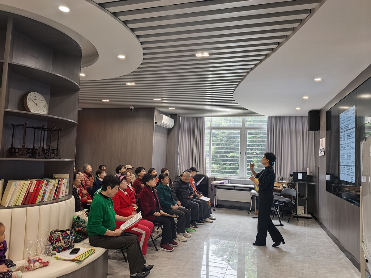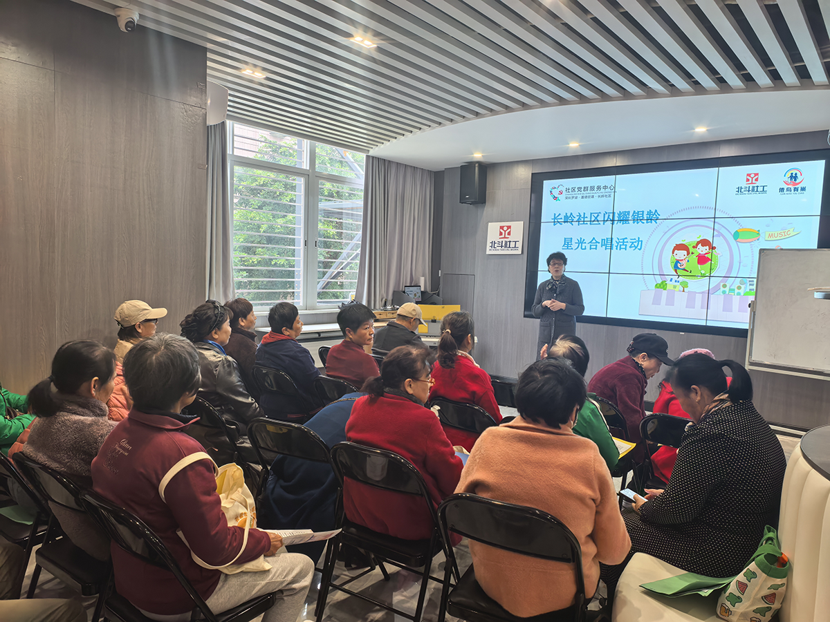 长岭社区讯:为丰富长者精神文化生活,提升养老服务品质,驻长岭社区党群服务中心的北斗社工于11月28日下午开展了“闪耀银龄”合唱活动,将其打造为常态化惠民项目。活动特别邀请了拥有30年声乐教学经验的刘老师授课,针对长者嗓音特点定制专属教学方案,让不同基础的长者都能在歌声中收获快乐。