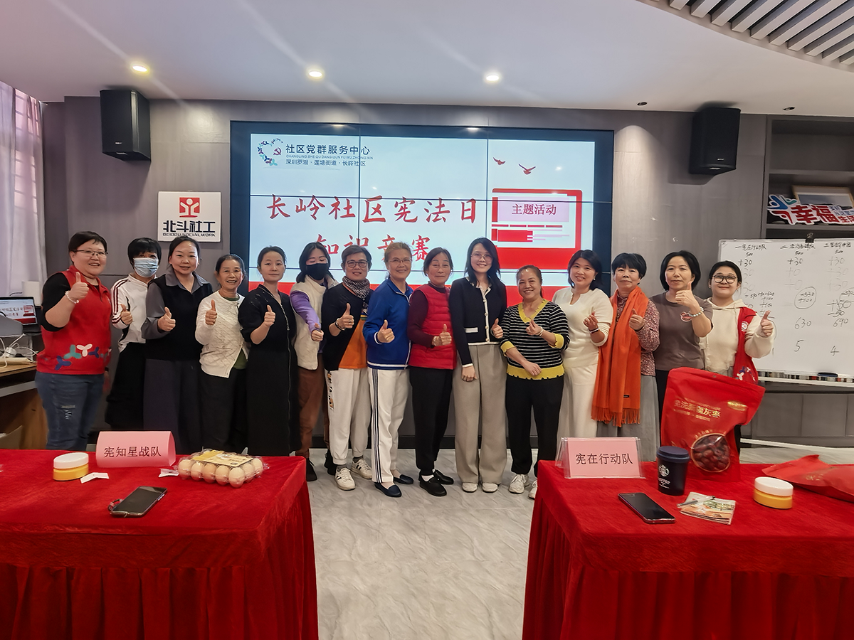 长岭社区讯:为深入学习宣传习近平法治思想,进一步提升社区居民的宪法意识和法治观念,在第十二个“12·4”国家宪法日当天,长岭社区党群服务中心的北斗社工精心组织开展了宪法主题宣传教育活动,通过“专家宣讲+知识竞赛”的丰富形式,让宪法精神走进社区、融入民心。