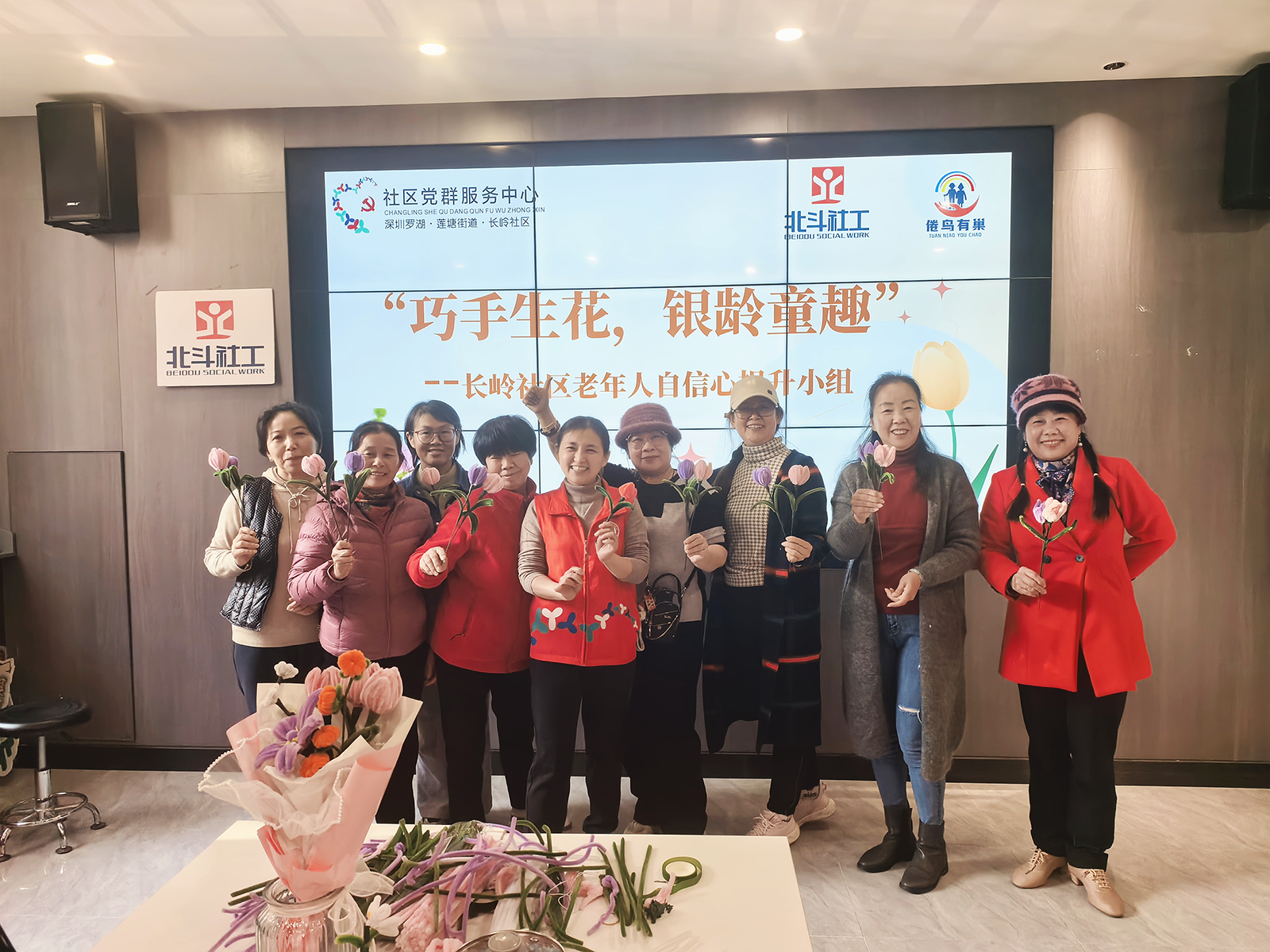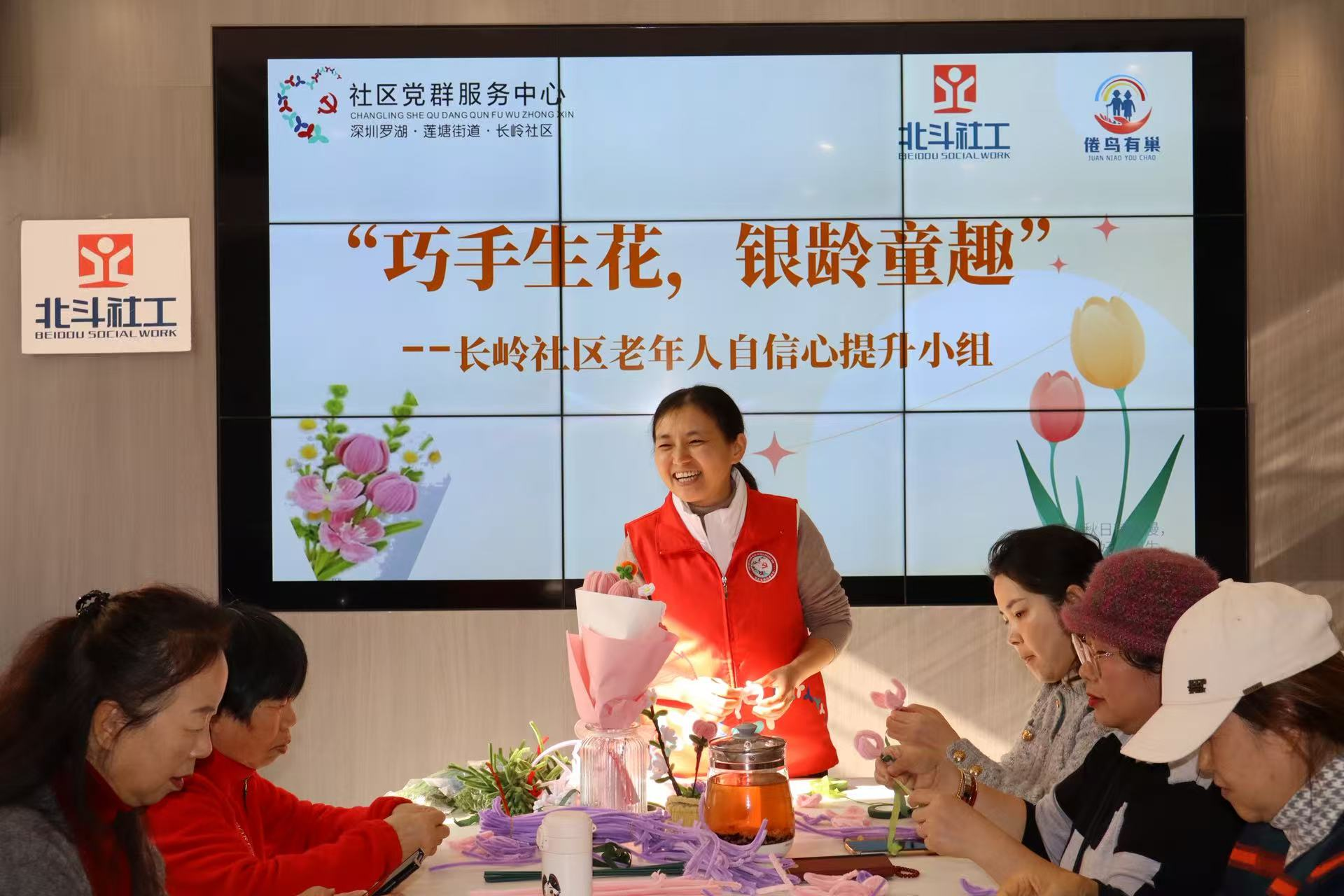 莲塘街道长岭社区开展“巧手生花,银龄童趣”老年人自信心提升小组