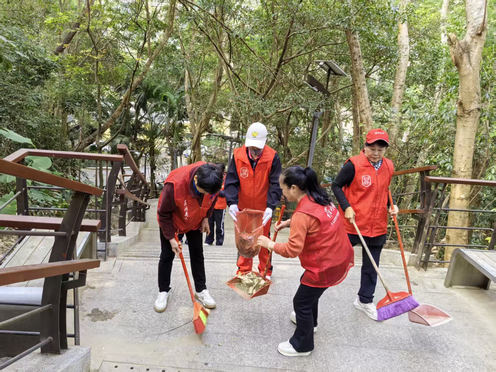 活动筹备阶段,社工提前协调做好志愿者招募、工具调配、安全提示等前期筹备工作。活动现场,志愿者们身着统一志愿服装,分工明确、配合默契。大家手持扫帚、簸箕、抹布等清洁工具,对公共阶梯的灰尘、杂物、顽固污渍进行全面清扫。有的弯腰捡拾阶梯缝隙中的纸屑杂物,有的奋力清扫堆积的落叶,有的用抹布擦拭阶梯扶手,不放过任何一个卫生死角。寒冷的天气里,志愿者们的额头却渗出细密的汗珠,忙碌的身影成为社区里一道温暖的风景线。他们用实际行动践行志愿精神,也带动了周边部分居民主动加入清扫队伍,形成了“人人参与、共建共享”的良好氛围。