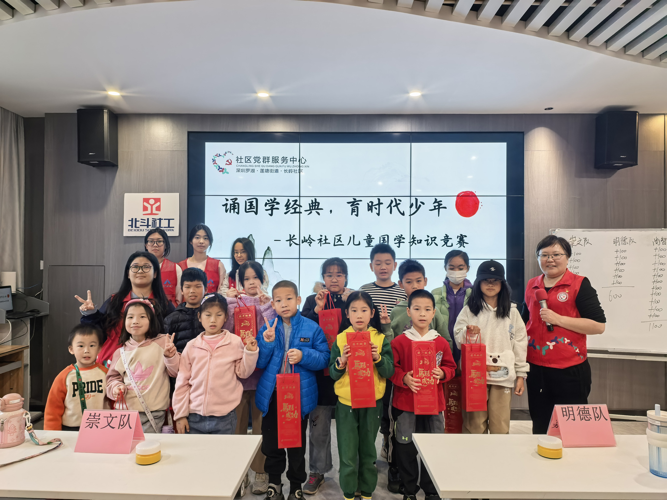 长岭社区讯:为传承中华优秀传统文化,激发社区儿童对国学经典的学习热情,培养孩子们的文化素养与团队协作能力,2月9日,长岭社区党群服务中心的北斗社工精心安排了“诵国学经典,育时代少年”儿童国学知识竞赛活动。