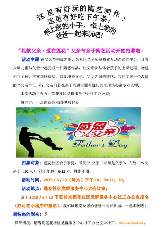"礼献父亲 爱在莲花"父亲节亲子陶艺活动开始招募啦!