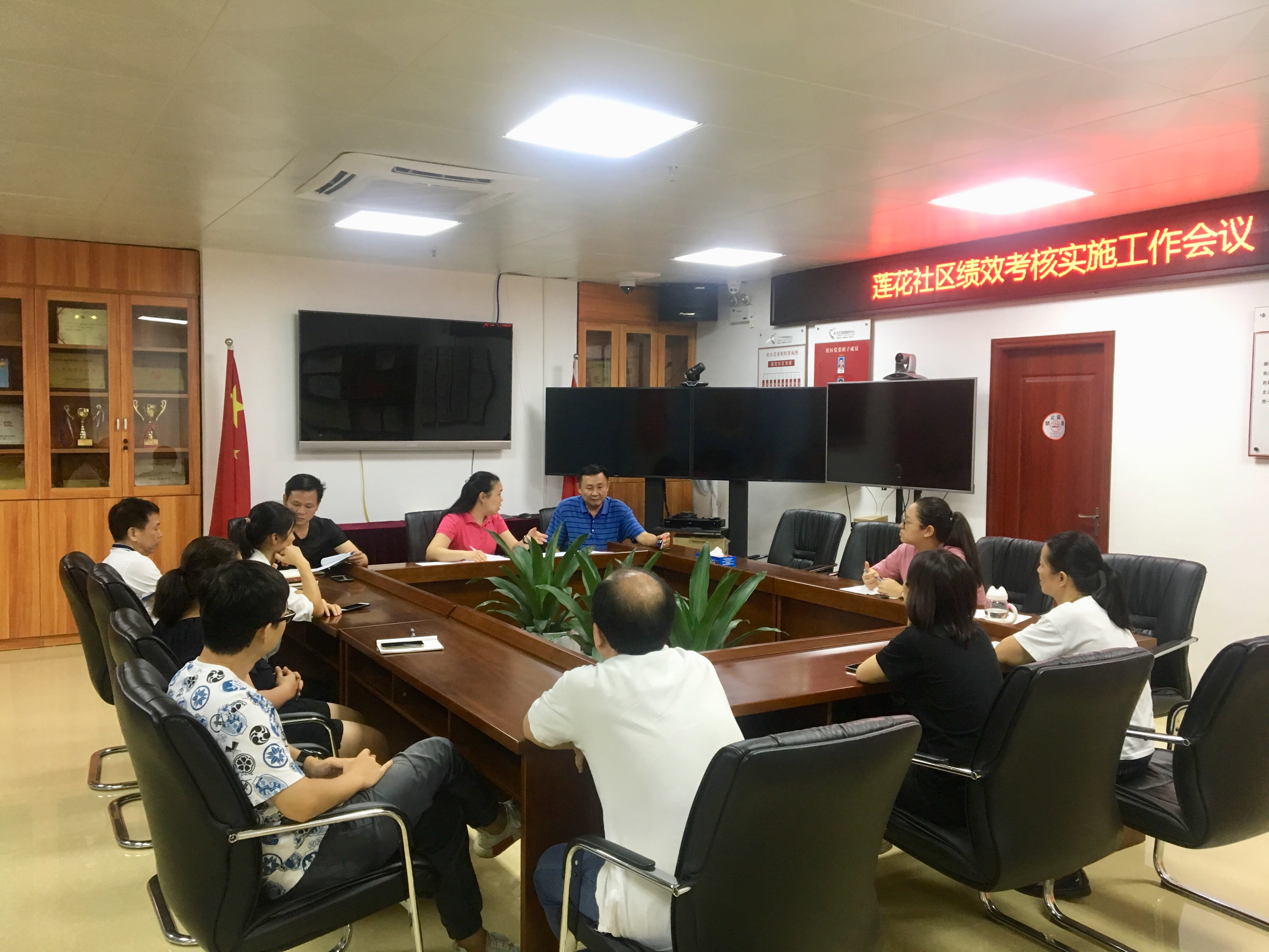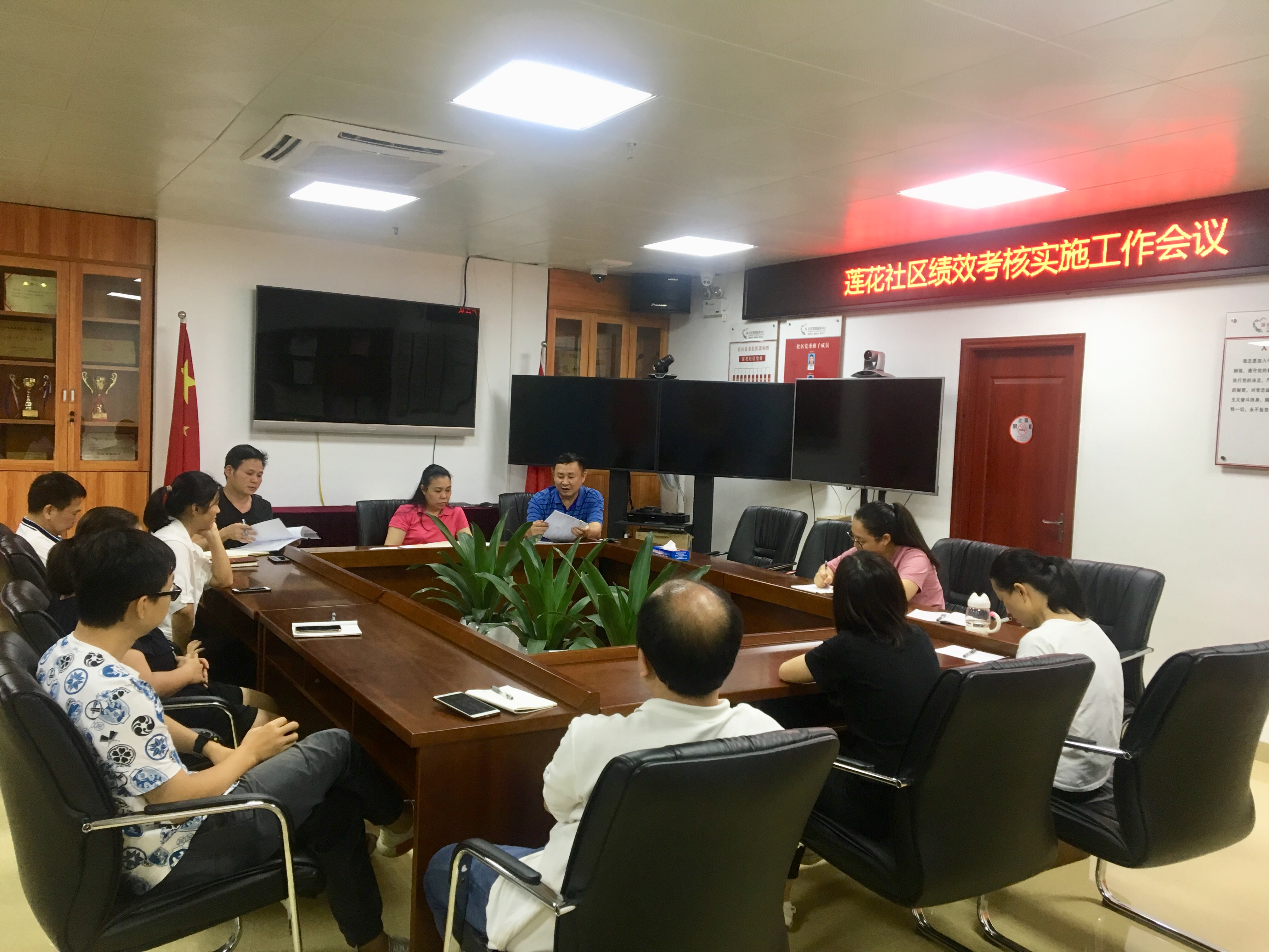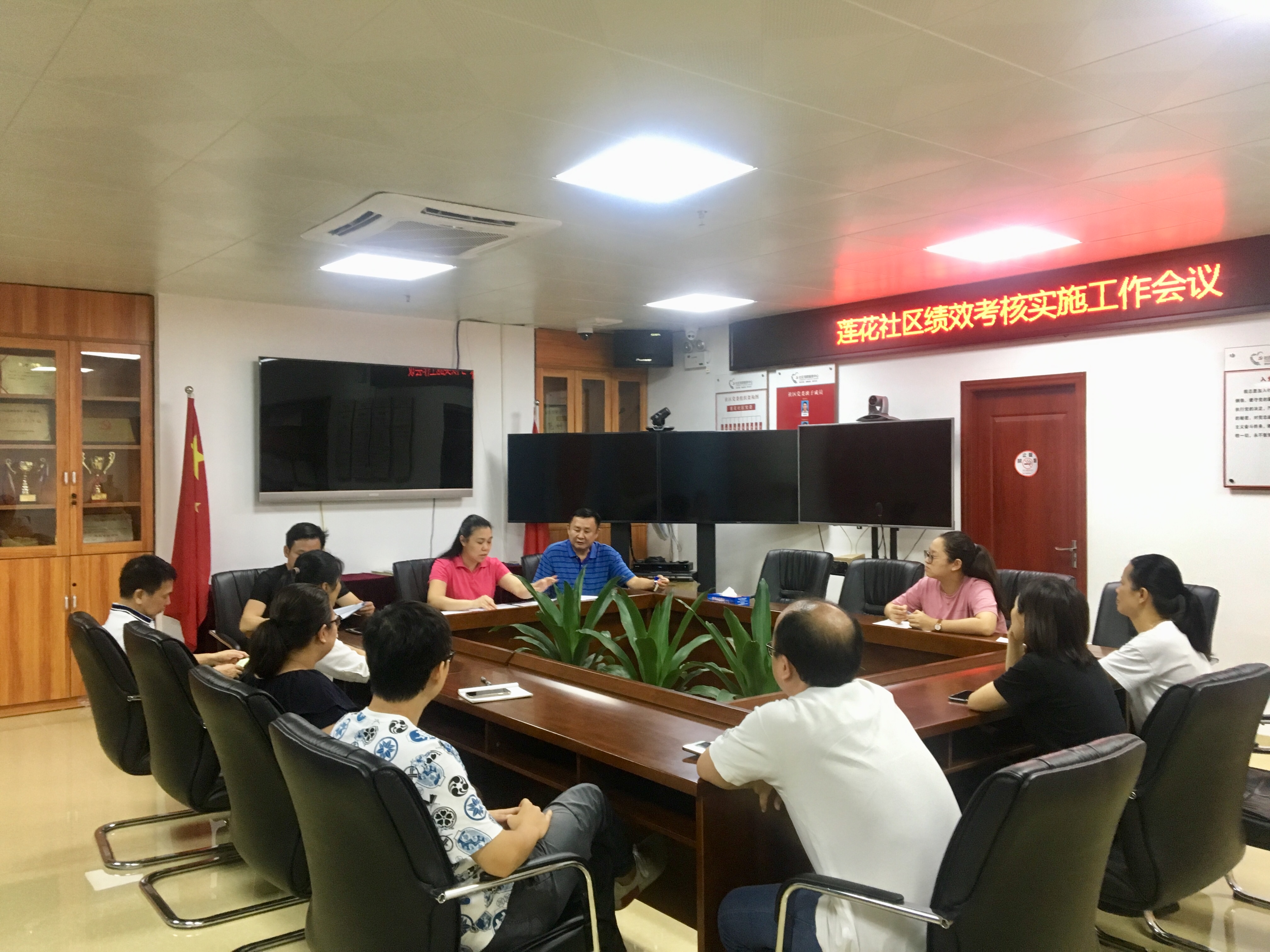 为了更好落实街道下发的最新《绩效考核实施办法》2019年8月20日,莲花社区召集各项工作的主要人员,在莲花社区会议室召开莲花社区绩效考核实施工作会议。本次会议由莲花社区党委书记主持。