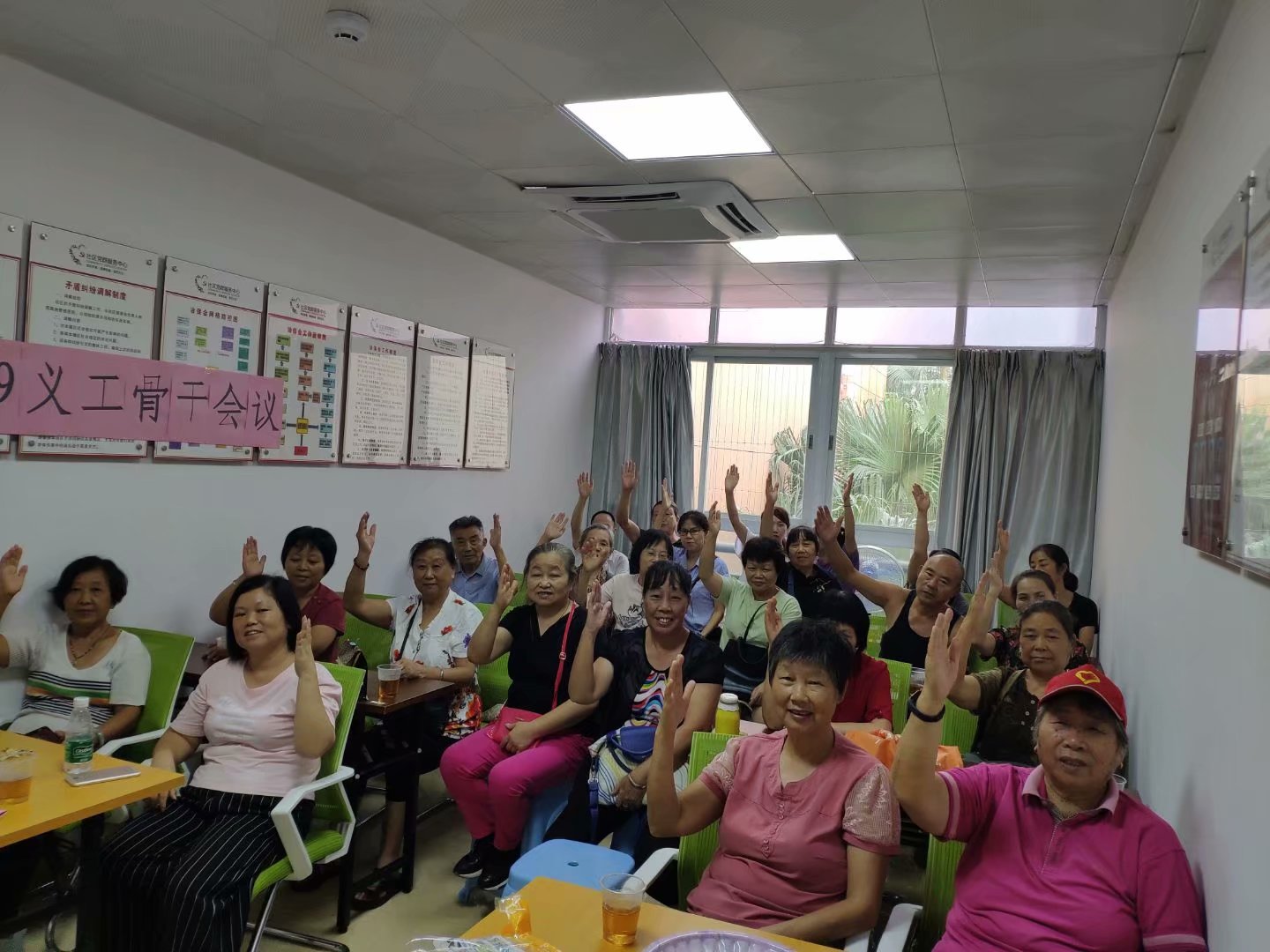 会议共25名义工骨干全程参与。负责社工就暑假义工服务进行了总结,充分肯定和表扬了暑期义工服务负责骨干的工作;参会义工骨干对开学后的义工服务活动内容一一进行表决:1.莲南小学对面商铺环境卫生劝导服务由严明培和王首菲两位骨干负责;2.“流动U站”常规服务中的周一至周五由王明珠队长带各骨干负责,周六由名骏义工队戴队长负责;3.每周一和每周五上午的环保队服务由曾秀玲和赵文英两位骨干负责;4.2019年团建活动定于十月中旬开展,九个节目的负责人在马泽碧骨干的总统筹下抓紧排练并及时沟通(各节目组在义工群里各发两张排练照片);5.各骨干积极报名参加9月11日莲花社区美食节美食制作环节。