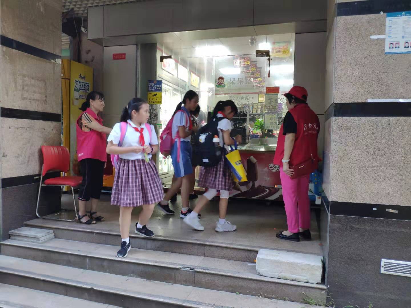 根据莲南小学学生们每天放学后会到学校对面的商铺购买零食并出现零食包装随手丢弃,严重影响社区和小区及学校周边市容的现象,义工队在社工的带领下自主筹备开展了此项服务,之后只要是莲南小学上学日,义工们都会准时服务。