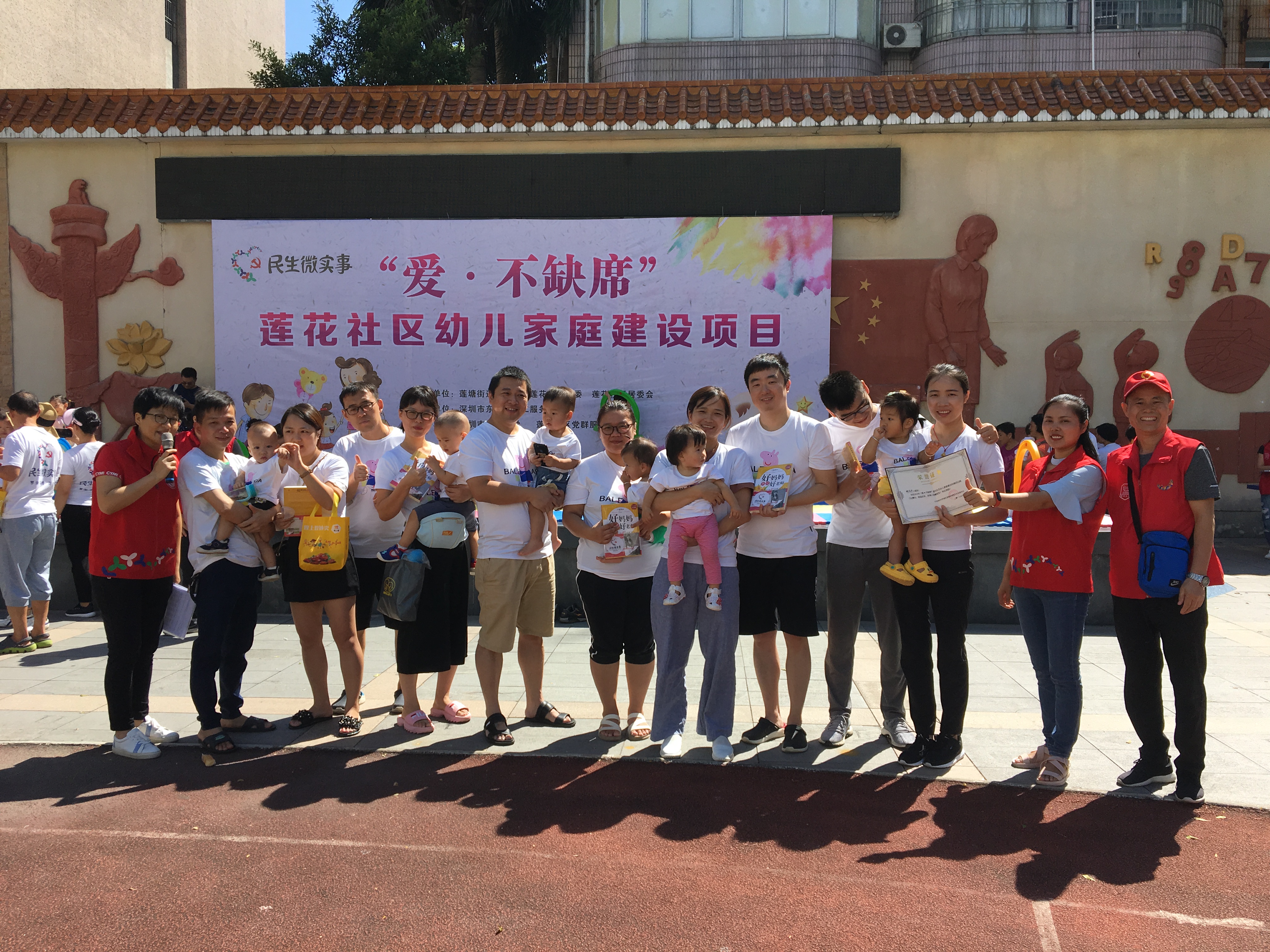 孩子是祖国的未来,孩子是家庭的希望,养育孩子需要家庭、社会以及幼儿教育机构共同来参与。为此,2019年9月22日上午,一场名为“爱·不缺席”莲花社区幼儿家庭建设民微项目活动在莲花社区莲南小学成功举办。