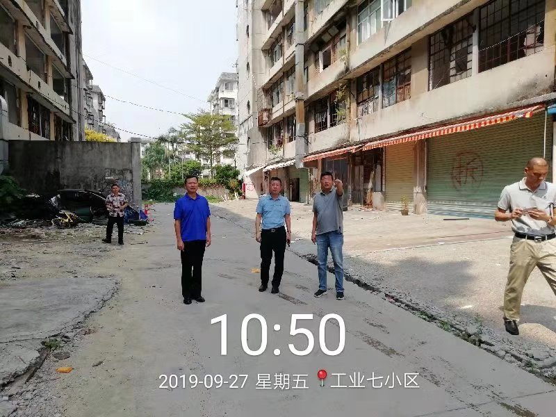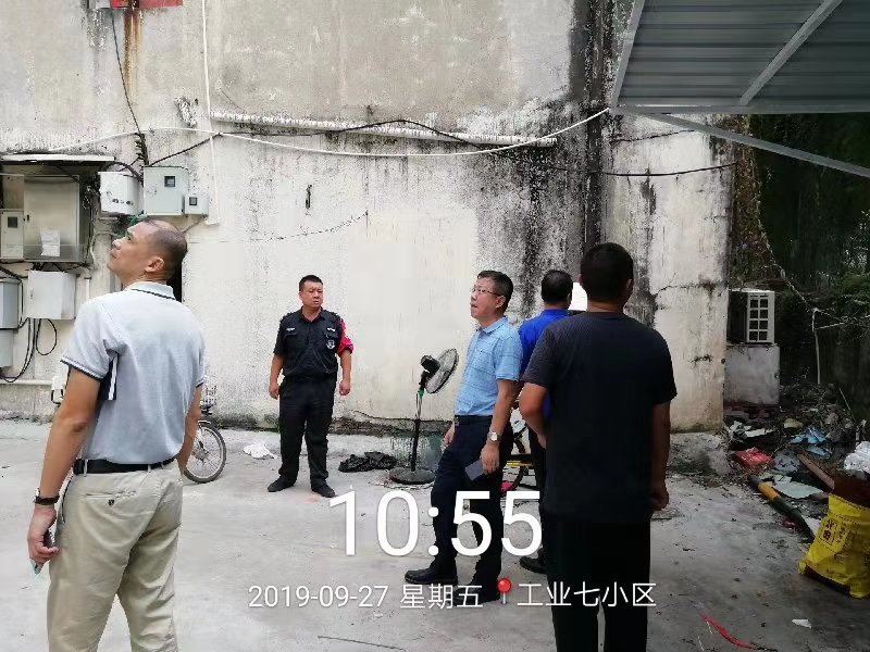 在国庆节前,即2019年9月27日上午,莲花社区积极配合街道安全办工作人员到工业七小区进行安全排查。