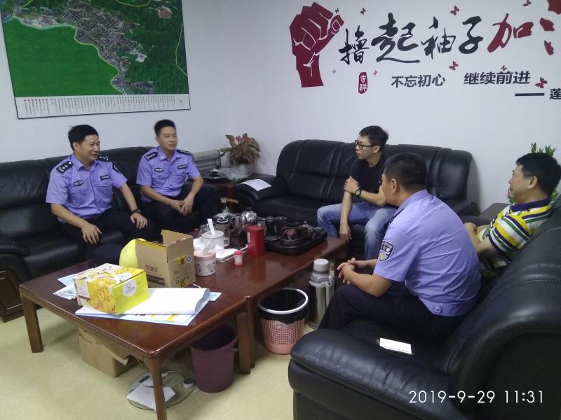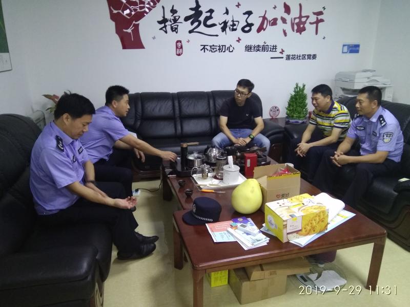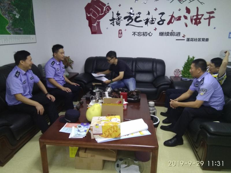 2019年9月29日上午,莲塘派出所莲花社区警务室刘文铭警长带队到莲花社区工作站交流国庆期间维稳综治等注意的问题,交换完善了重点管控人员的信息。莲花社区警务室刘文铭警长还要求要保持社区警务室及社区工作站的信息互通,及时反馈所获得的有关重点管控人员的信息。