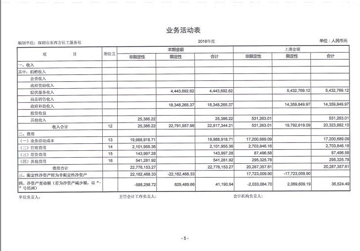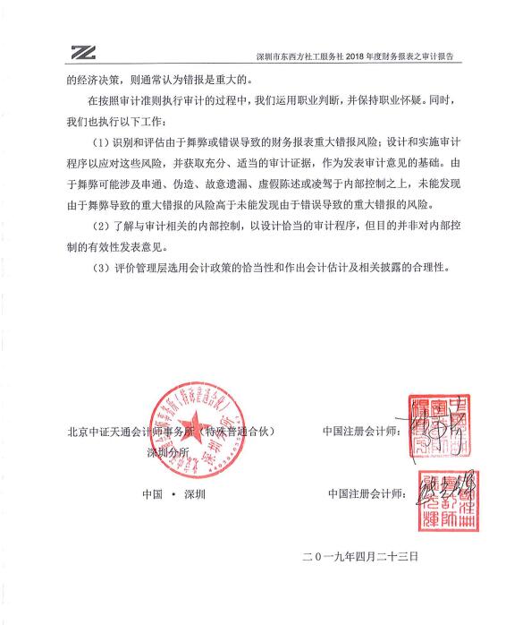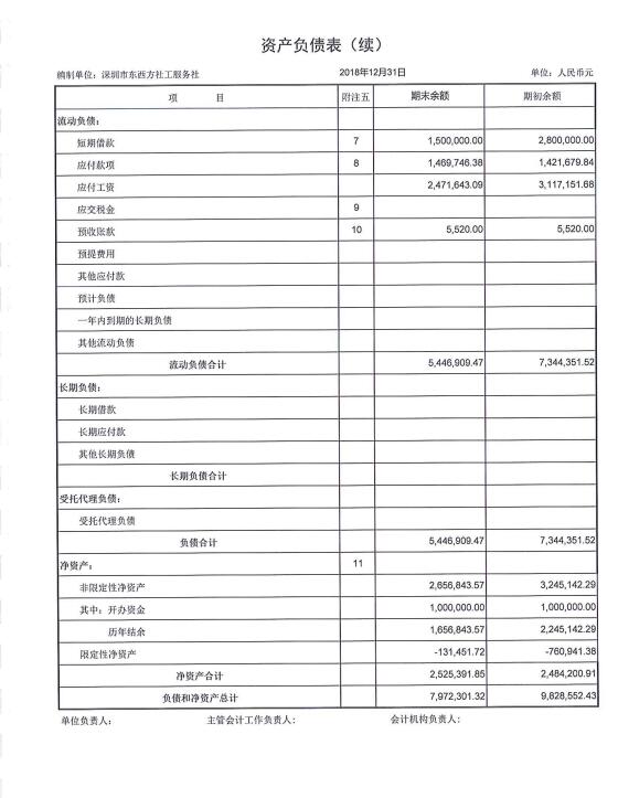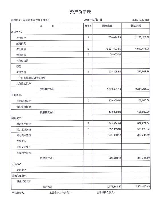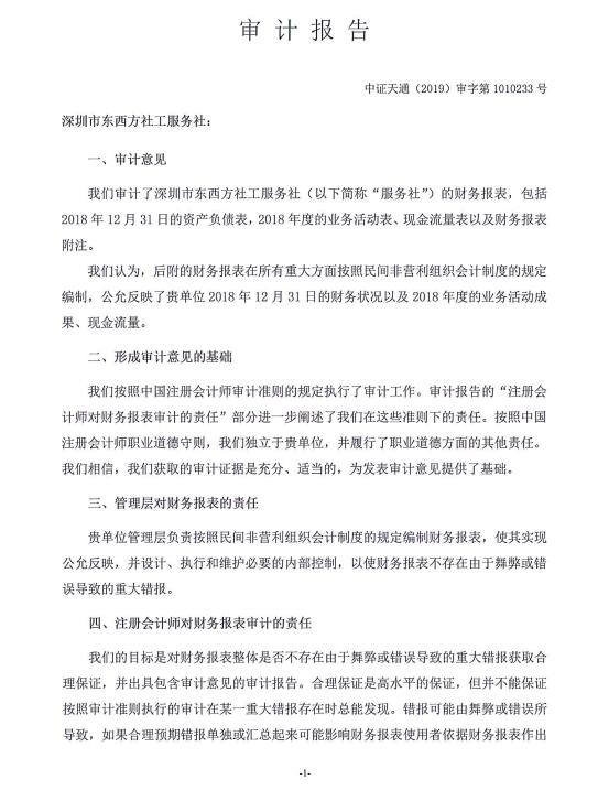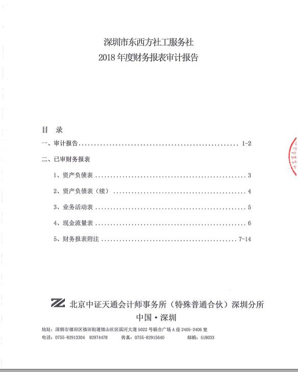 深圳市东西方社工服务社2018年度财务报表审计报告