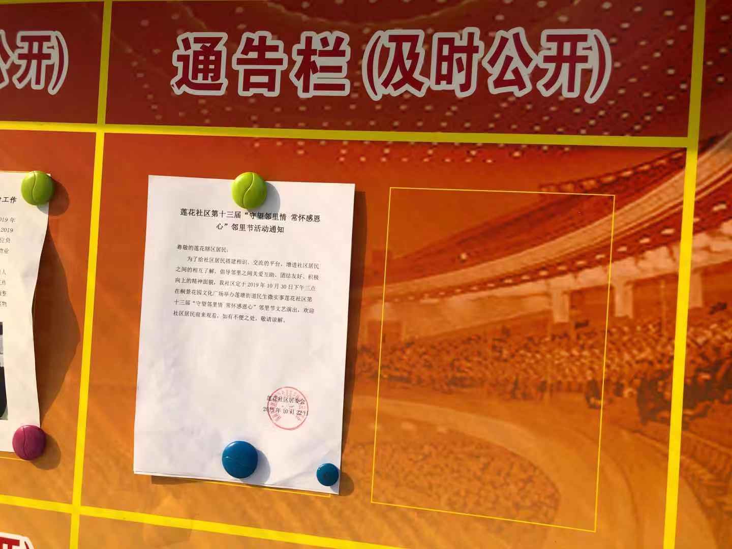 为了给社区居民搭建相识、交流的平台,增进社区居民之间的相互了解,倡导邻里之间关爱互助、团结友好、积极向上的精神面貌,我社区定于2019年10月30日下午三点在桐景花园文化广场举办莲塘街道民生微实事莲花社区第十三届“守望邻里情 常怀感恩心”邻里节文艺演出,欢迎社区居民前来观看,如有不便之处,敬请谅解。