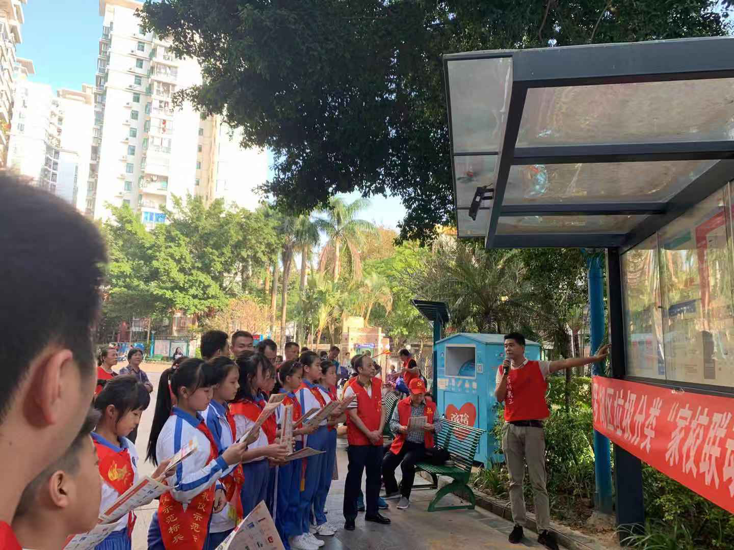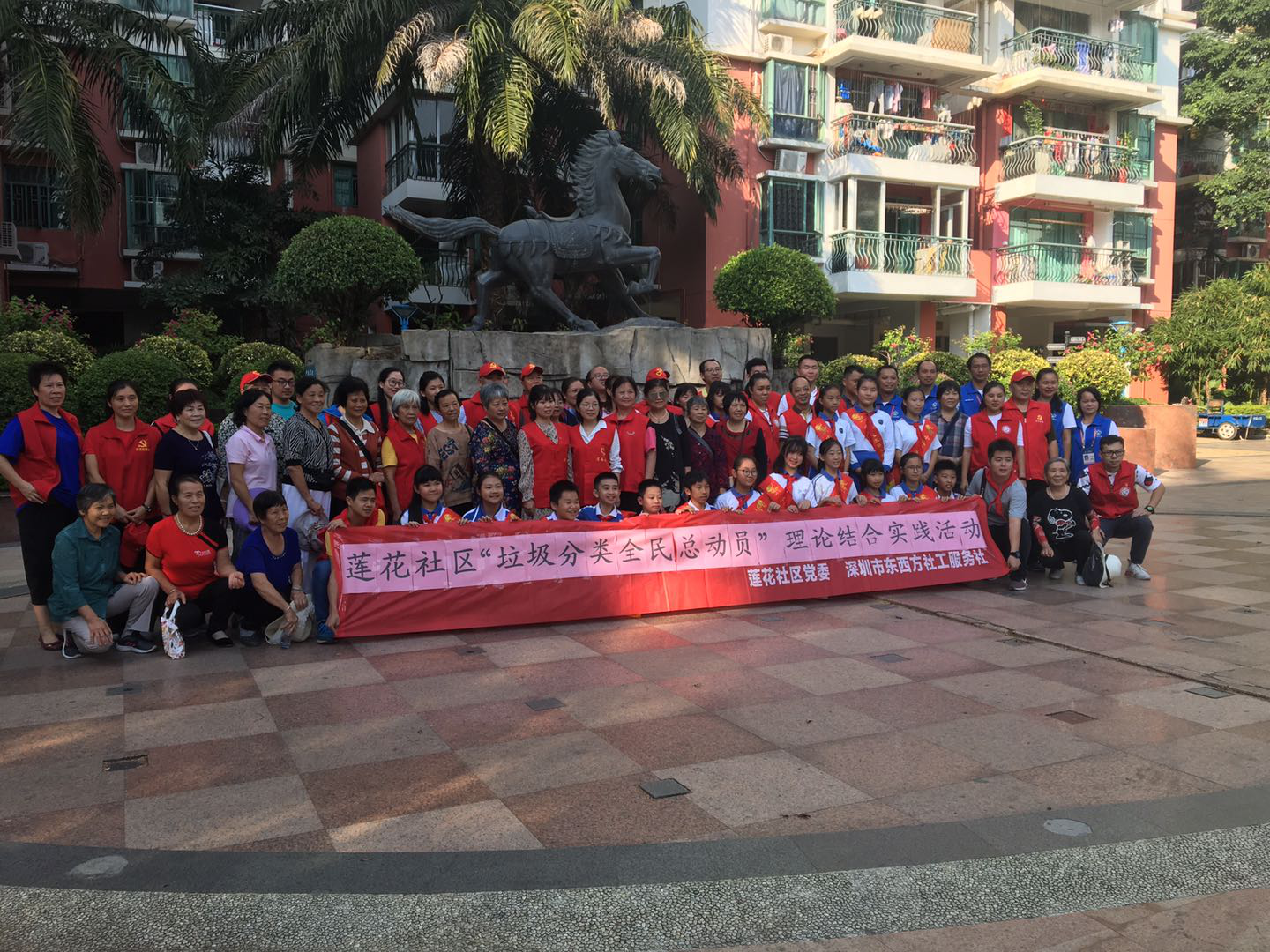 活动现场,通过悬挂横幅、派发有关垃圾分类的宣传手册,并有专业的讲解员讲解垃圾分类知识,让莲南小学的老师及学生和辖区党员群众更好的做好垃圾分类,以及垃圾分类的重要性。活动的下半场,莲花社区党委组织社区工作人员及莲南小学师生通过捡垃圾的形式,践行如何做好垃圾分类,践行“爱护环境,人人有责”的理念。