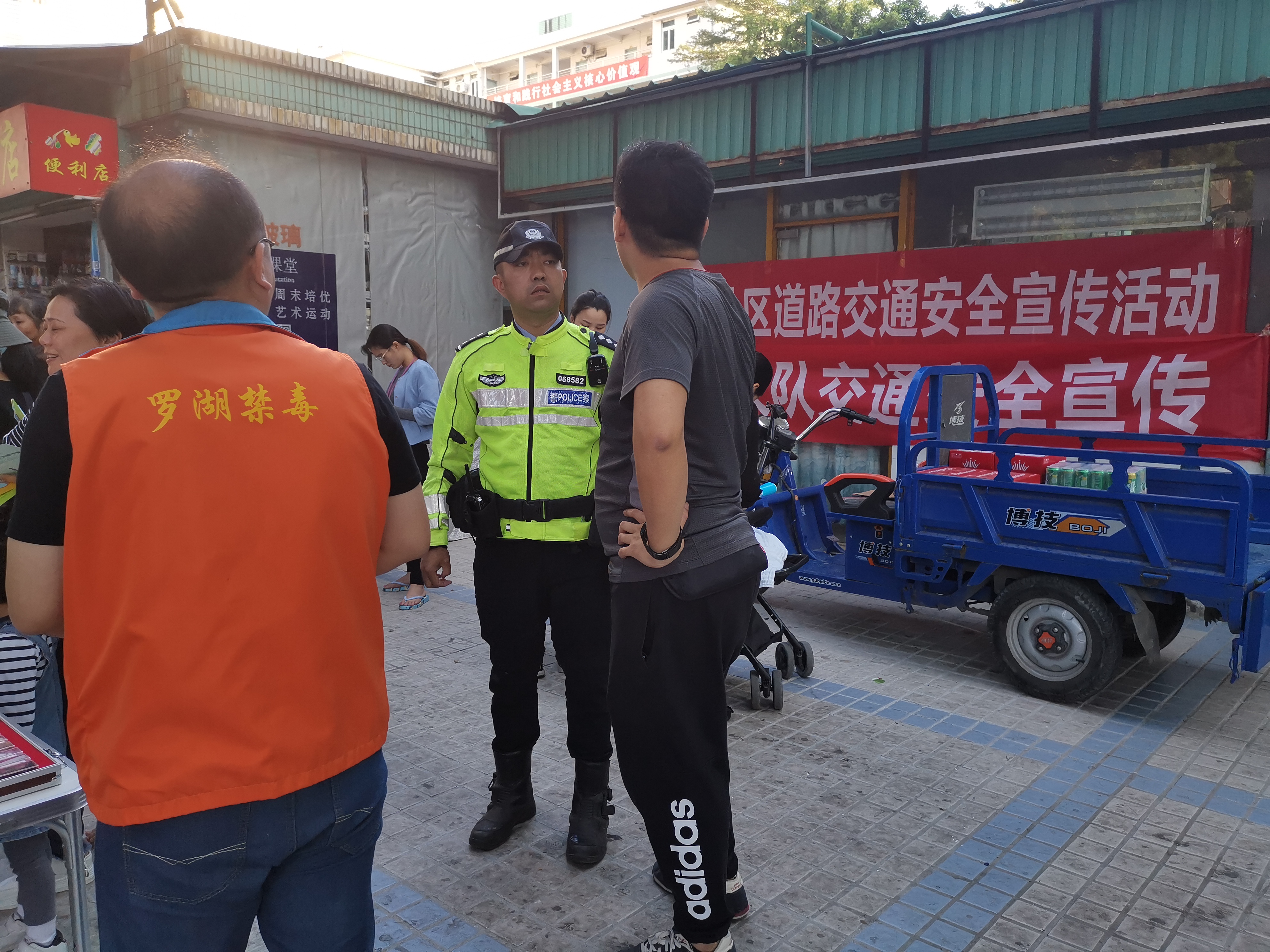 活动是选在学校放学的时间段进行,有很多社区居民都骑电动车接送小孩。在现场,社区工作人员悬挂横幅,派发道路交通安全宣传手册,向居民讲解道路交通安全法规等,引导社区居民及学生参与填写道路交通安全调查问卷,领取道路交通安全宣传小礼品,包含了学习用具和道路交通安全反光衣等。莲花社区还邀请交警参与此次活动,通过真实的案例向居民讲解文明交通的重要性。