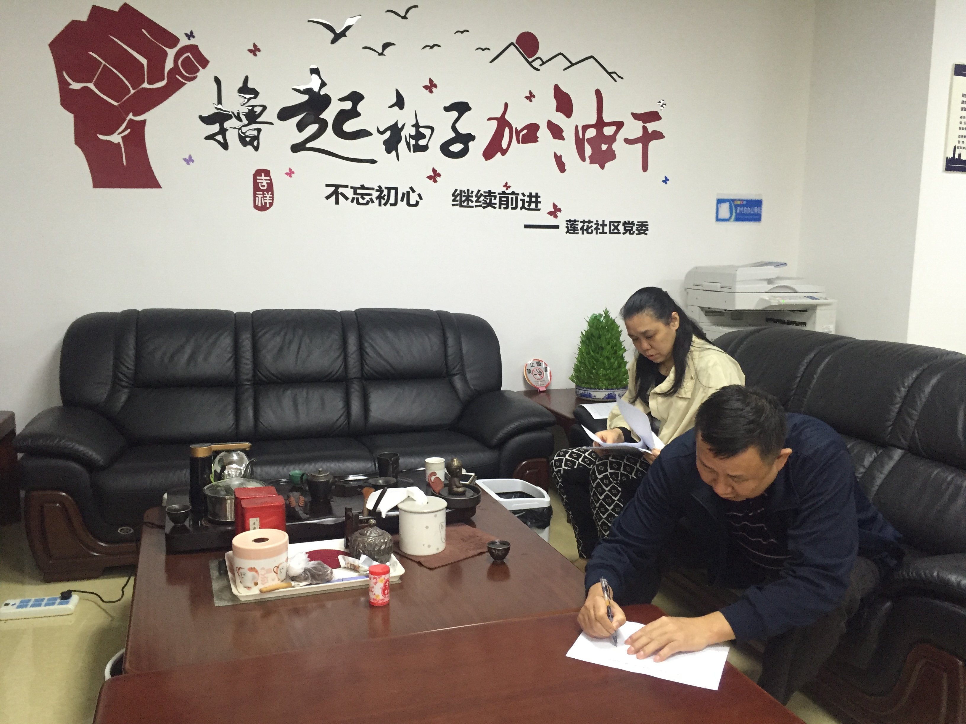 在座谈会上,莲花社区党委书记先汇报社区党群服务中心近期的工作情况。然后,莲花社区第一书记也对社区近期的的工作情况作出指导,特别对社区近期的迎接市里检查工作。