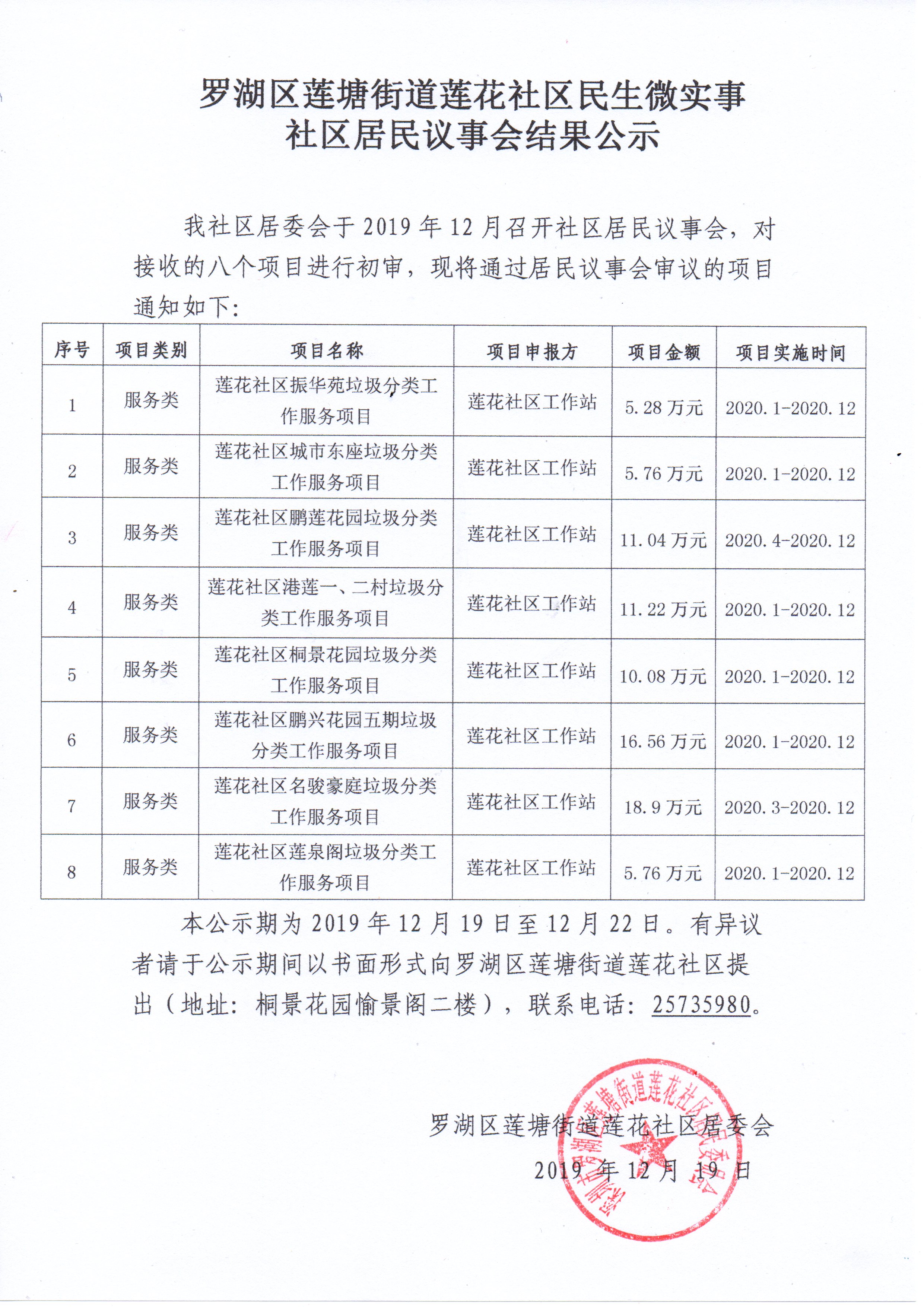 莲塘街道莲花社区民生微实事社区居民议事会结果公示