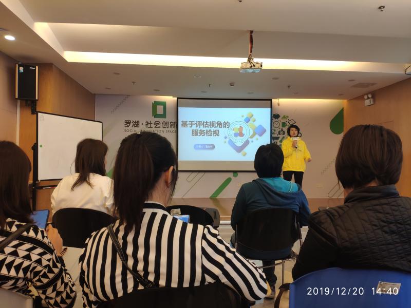 2019年12月20日下午,在莲花社区党委的大力支持下,莲花社区党群服务中心社工办公室的一名社工参加了由罗湖区社会工作者协会主办,在深圳市罗湖区社会创新空间四楼开展的“基于评估视角的服务检视”培训。