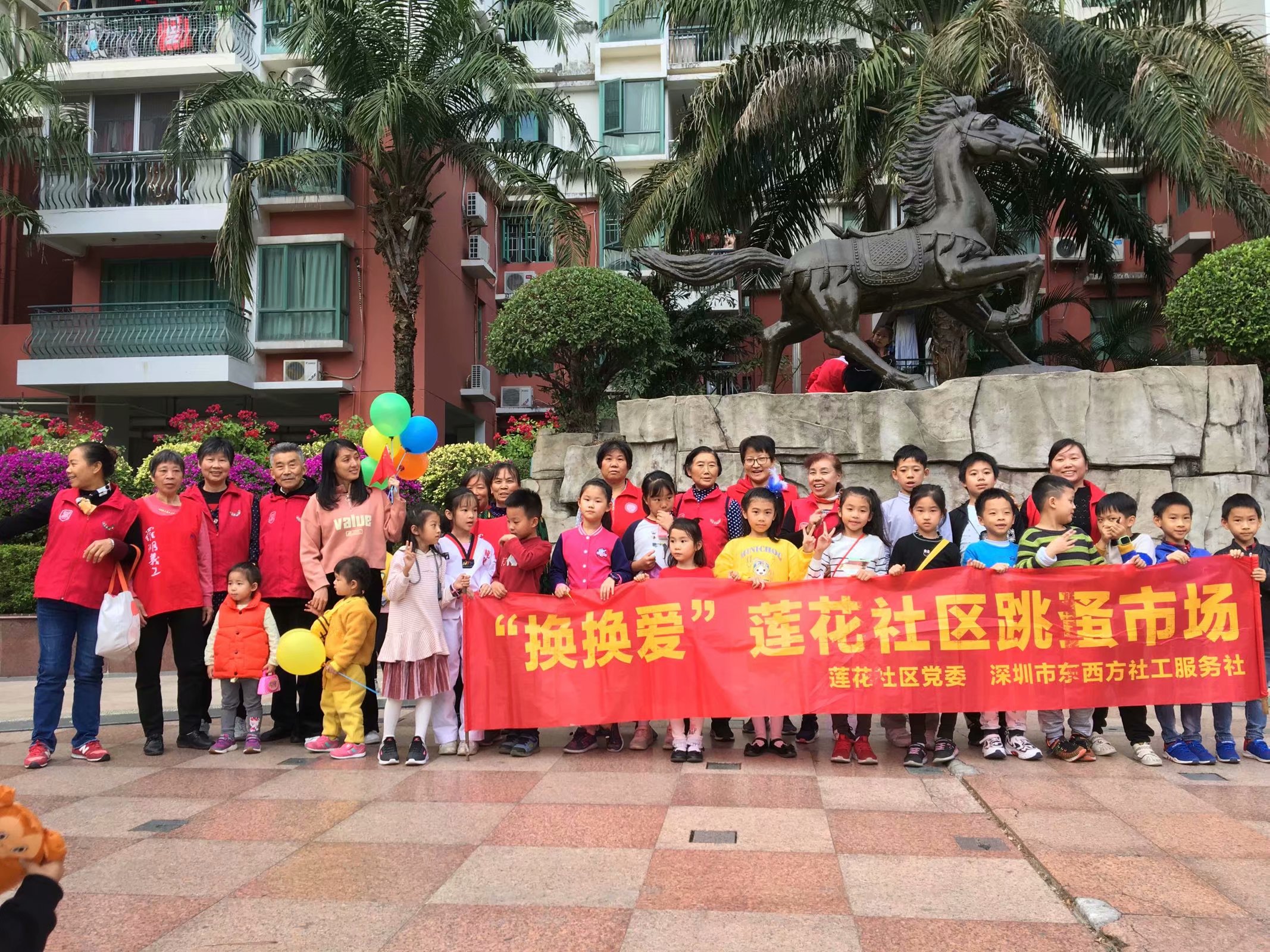 2019年12月21日下午3:00—5:30,在名骏豪庭花园小区广场内,由莲花社区党委、莲花社区工作站、深圳市东西方社工服务社驻莲花社区社工团队组织举办的2019“换换爱”莲花社区旧物跳蚤市场第四季圆满开展!