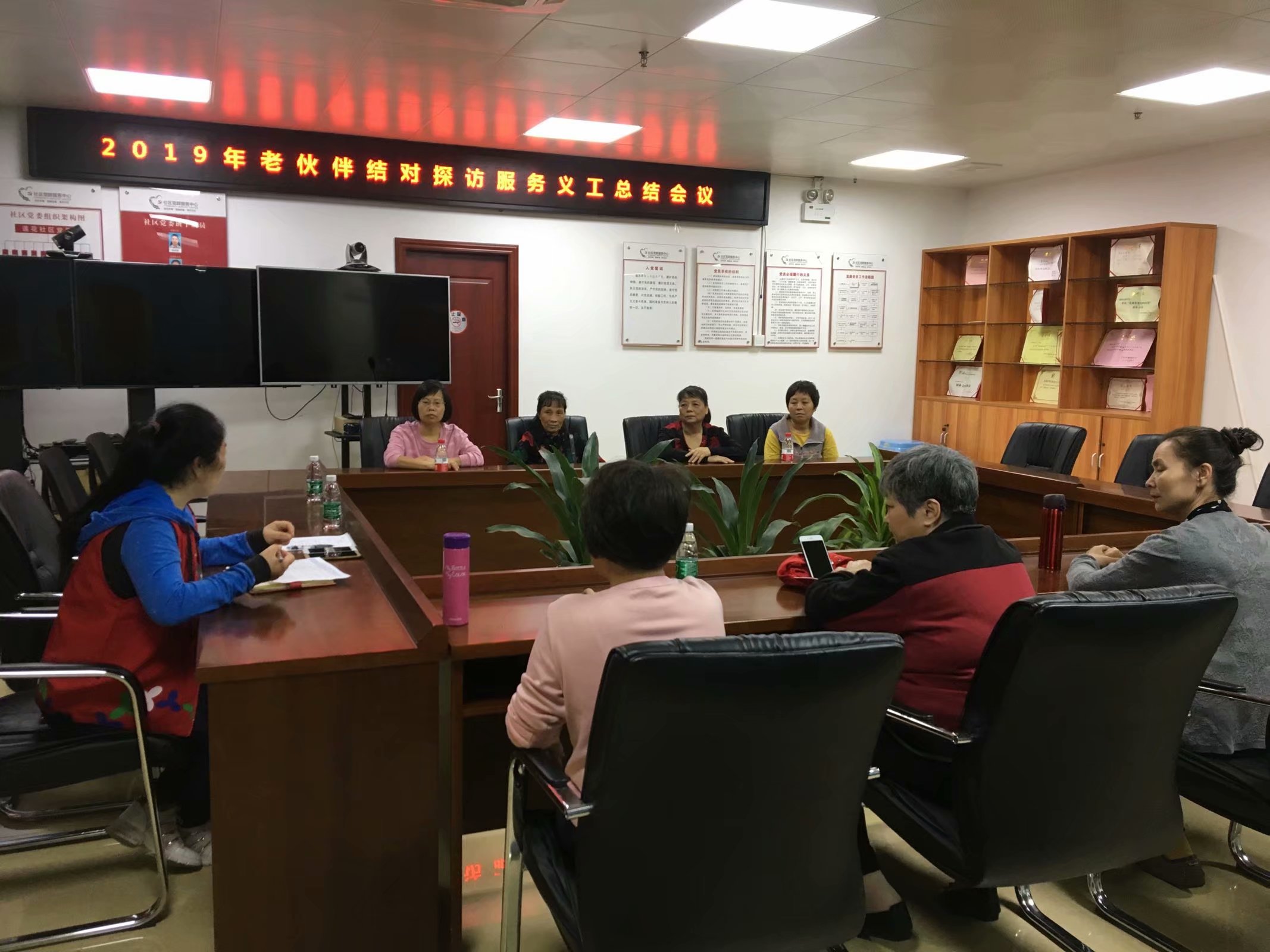 2019年12月26日上午10点00分,在莲花社区党委大力支持下,深圳市东西方服务机构社驻莲花社区党群服务中心在会议室,举办“2019年老伙伴志愿行结对探访服务义工总结会议”。社工与10名探访义工共聚一堂,总结2019年的探访工作,并对2020年的工作开展计划各抒己见;同时宣布增设一名队长周阿姨,她将带领着探访队继续提供更优质的服务。