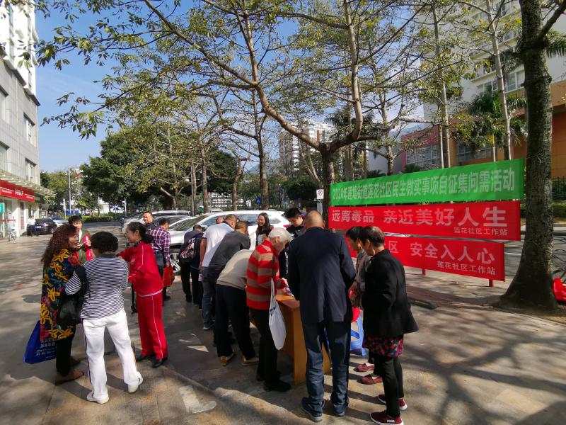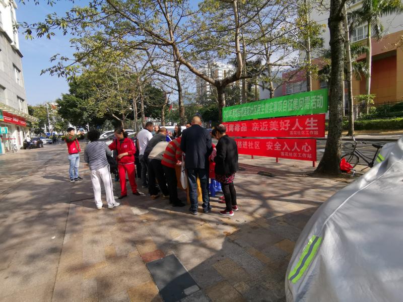 为进一步提高辖区居民的禁毒意识,扩大禁毒宣传覆盖面和影响力,积极营造全民禁毒氛围。2020年1月3日上午,莲花社区组织禁毒社工及网格员,在名骏豪庭平方超市门口开展一场以“无毒生命灿烂 涉毒生命暗淡”为主题的禁毒宣传教育活动。