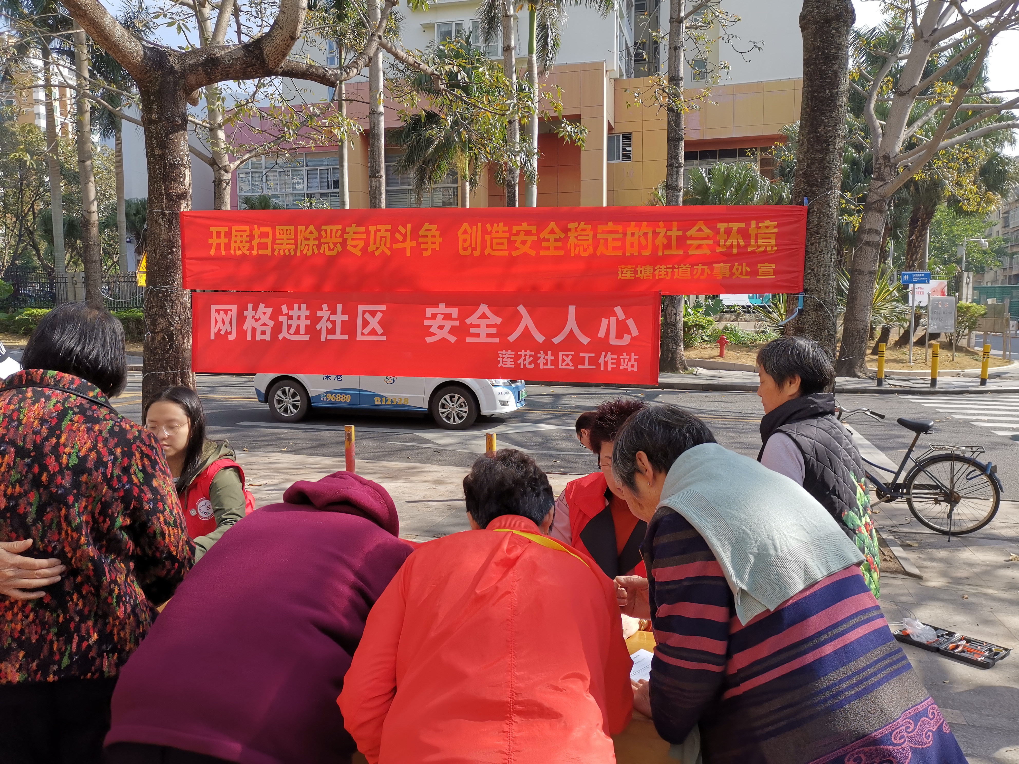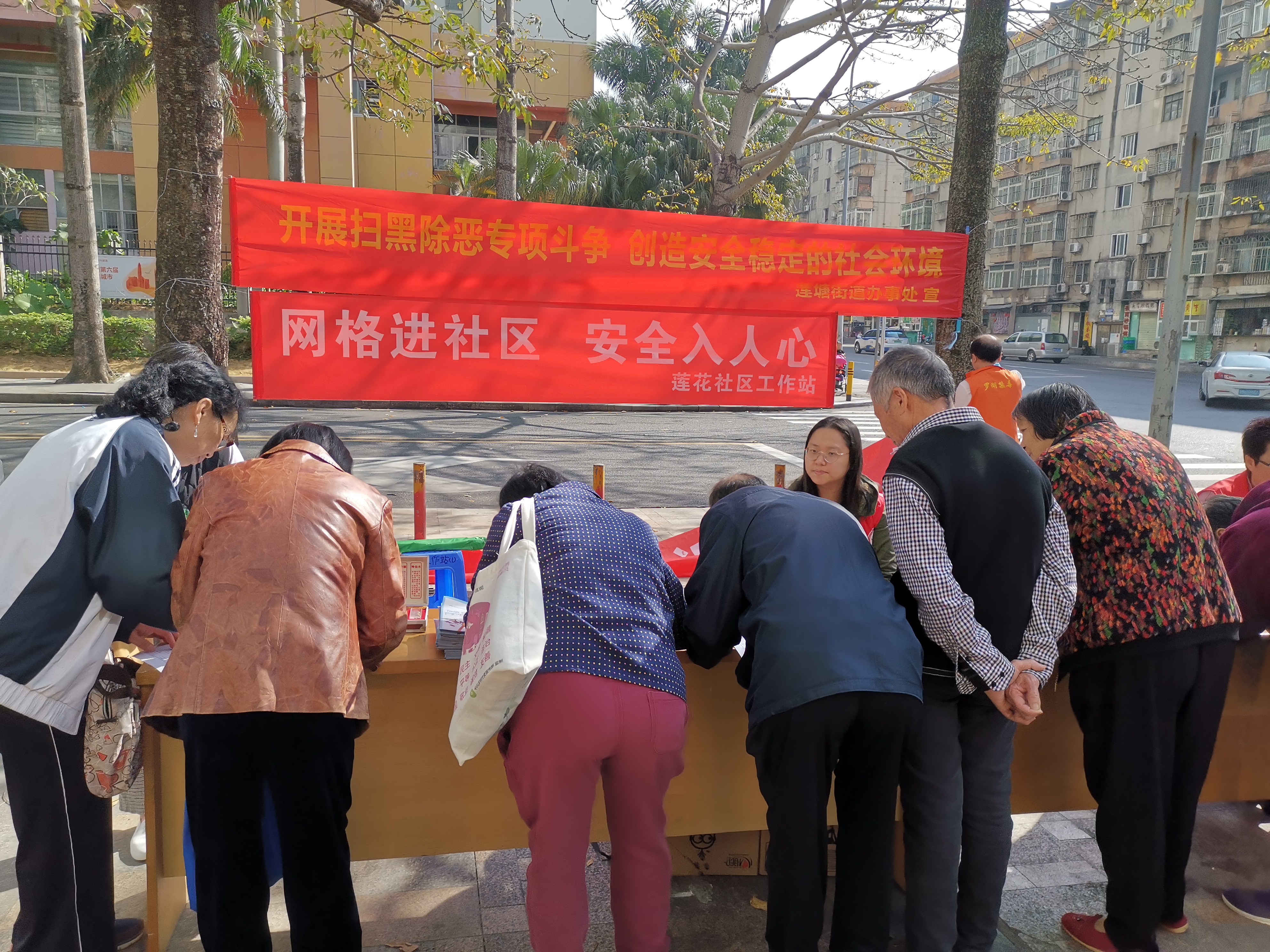 为严厉打击各类涉黑涉恶违法犯罪,维护社会治安稳定,保障社区居民安居乐业,2020年1月13日上午,莲花社区工作站在名骏豪庭平方超市门口组织开展扫黑除恶专项斗争宣传活动。