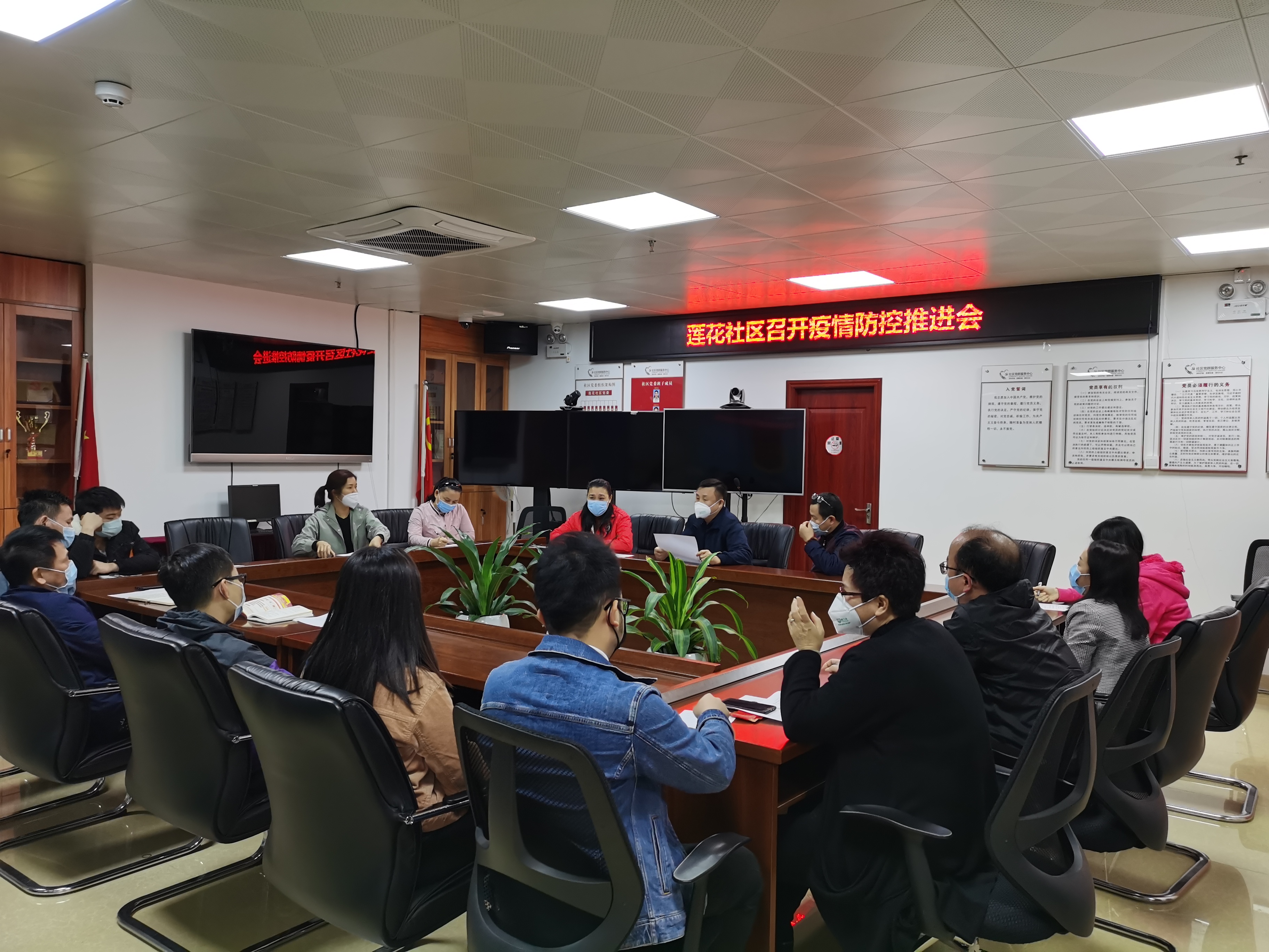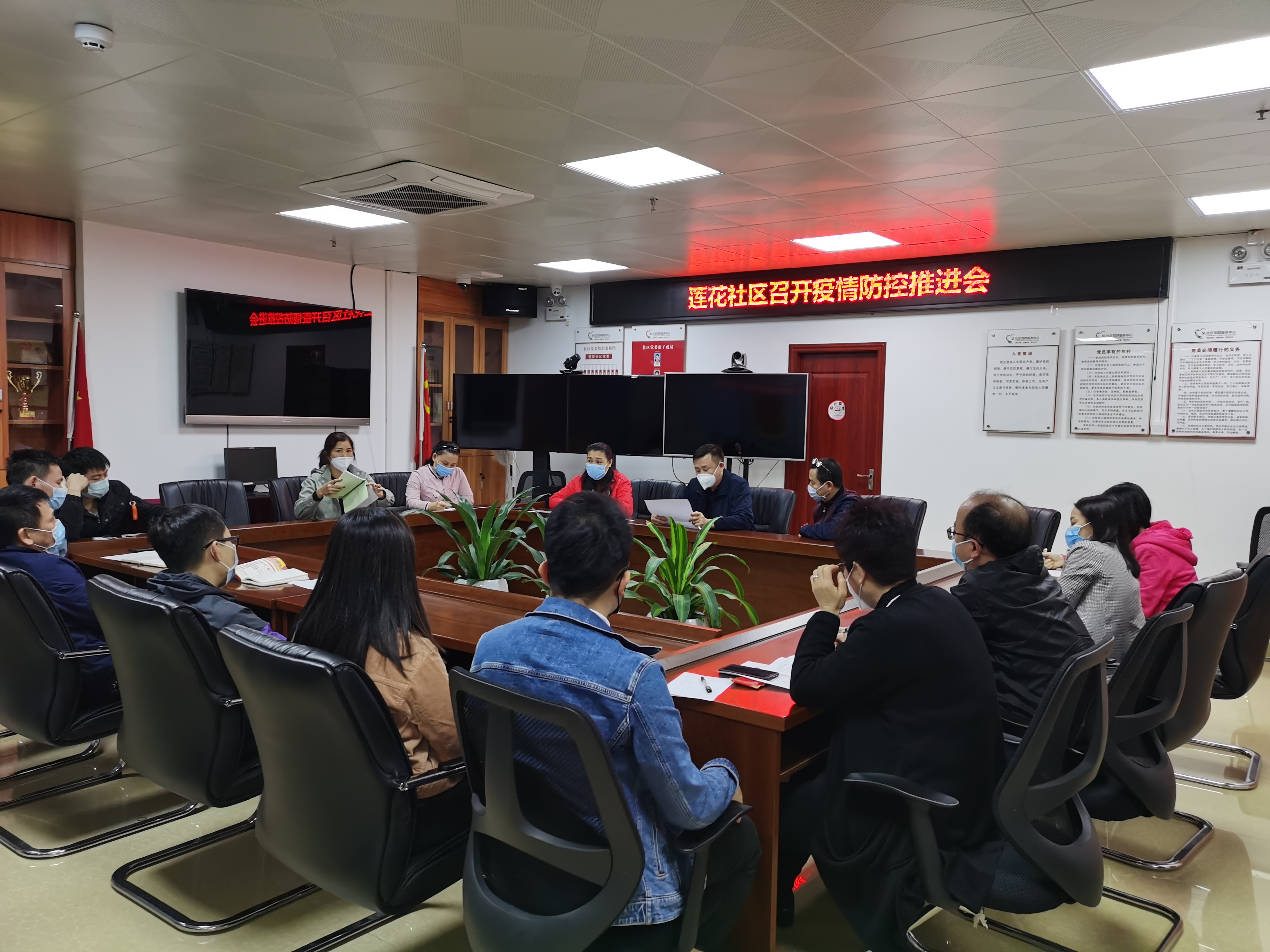 在会议上,莲花社区党委书记再一次针对原有5个责任区的工作作出严格要求,要求负责每个责任区的人要充分掌握区域内从疫区回深人数和疫区未回深人数等数据,并要了解已经从疫区回深人员的身体状况及隔离期间的生活状况。另外,要求核查各个小区管理处及辖区已开业门店的防控防疫工作落实情况。莲花社区第一书记对莲花社区党委书记的工作安排作出肯定,要求要利用好现有资源,想尽办法跟踪重点人群,做好密切接触人群等追踪排查,切实做到早发现、早报告、早隔离、早治疗。