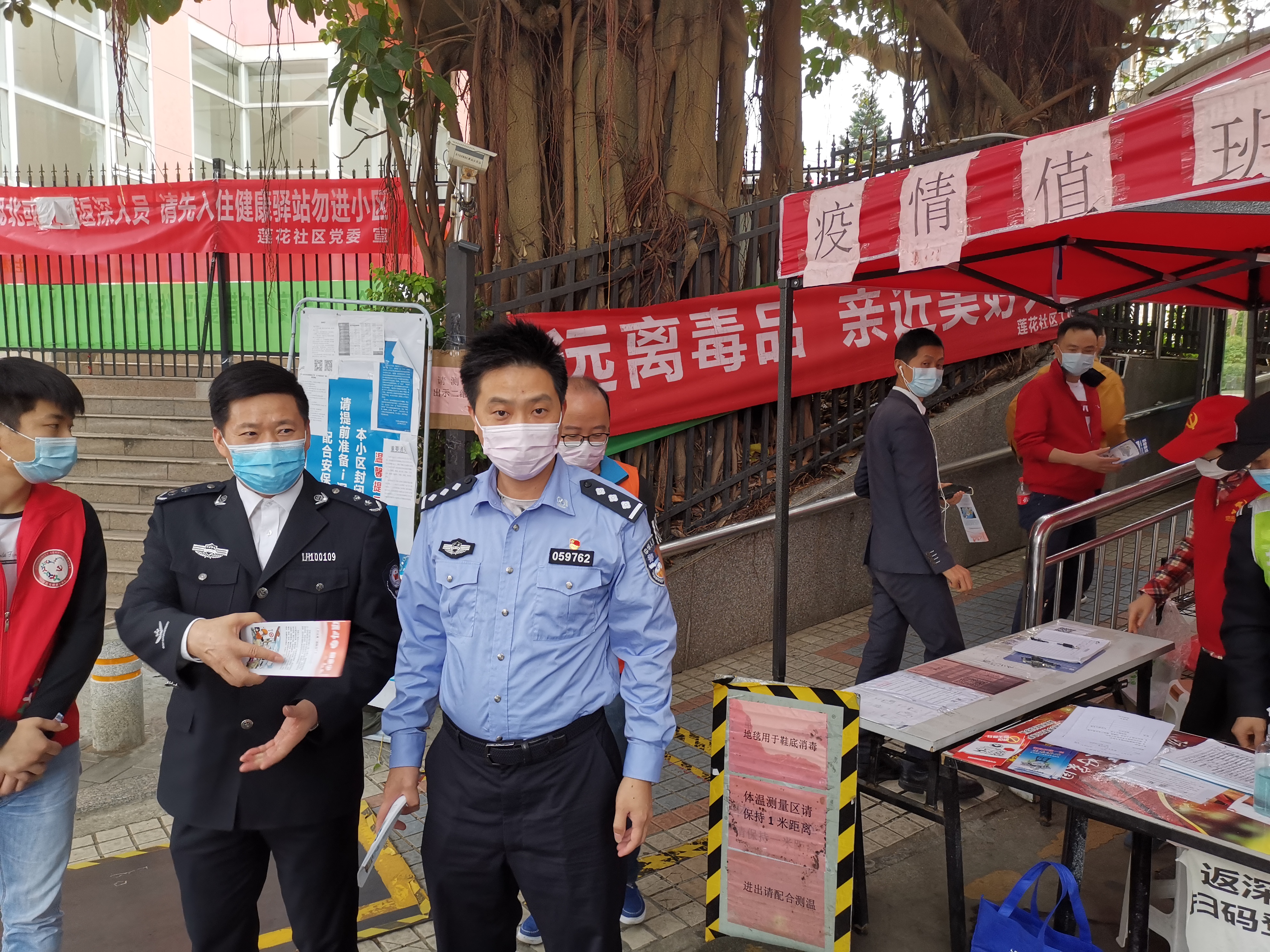 为提高辖区群众预防新型冠状病毒感染肺炎和防毒禁毒意识,自觉抵制毒品侵害。2020年4月3日下午,莲花社区警务室刘文铭警长来到桐景花园疫情防控检查点与禁毒社工及网格员一起开展新冠肺炎疫情防控暨禁毒宣传活动。