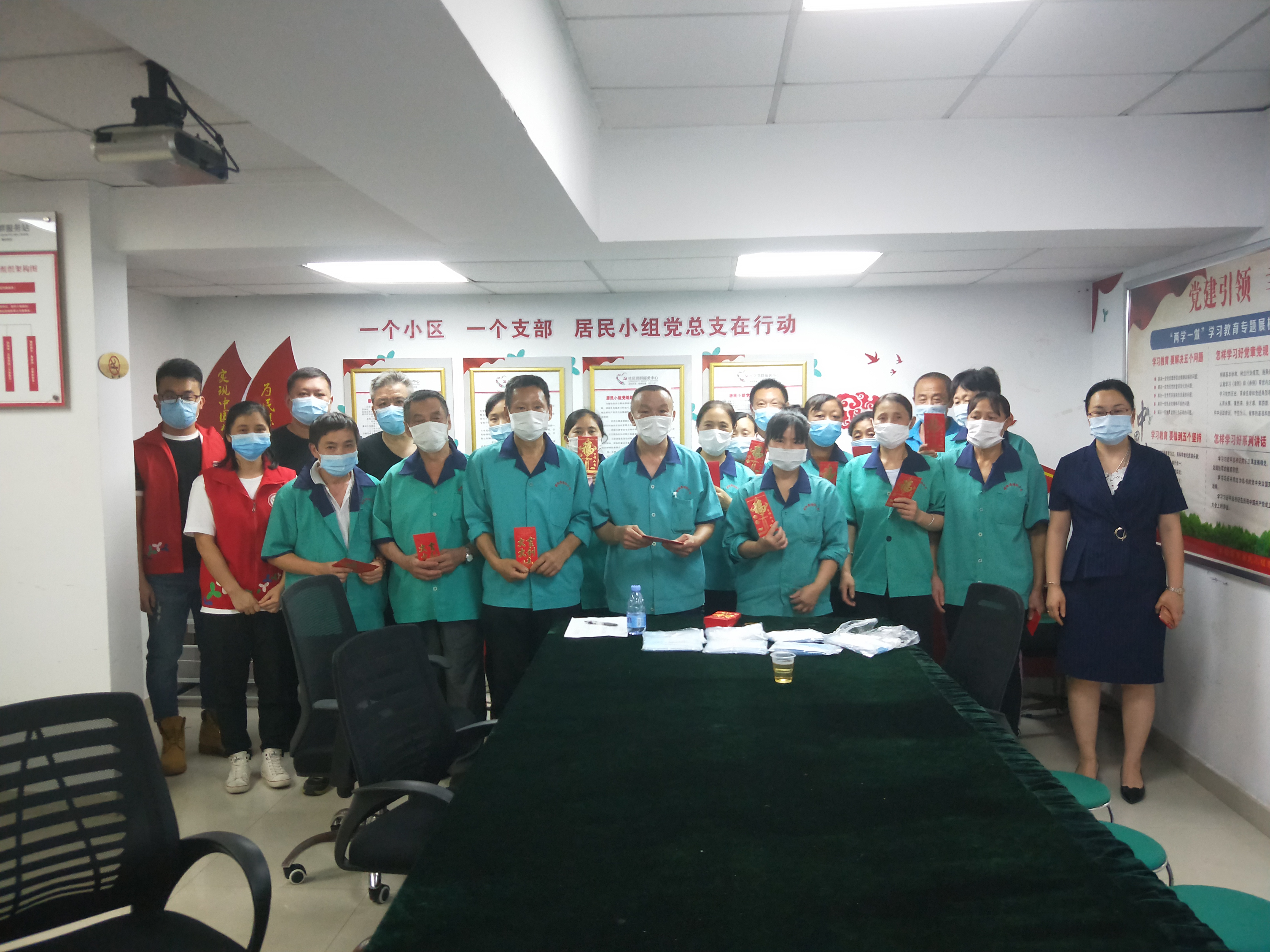 小区是城市疫情防控的关键基础。物业人员舍小家顾大家,不顾个人安危,勇敢奋战在抗“疫”第一线,是守护家园的最美“逆行者”。2020年4月30日下午,莲花社区参与名骏豪庭党组织和业委会慰问一线工作人员活动。