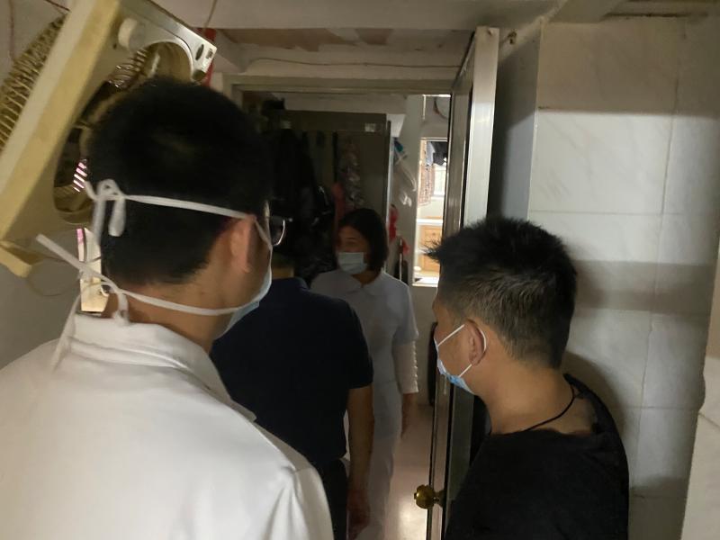 莲花社区“三位一体”成员检查了香港返深人员家里的环境,看是否符合居家隔离的条件,接着莲花社康医生为即将与香港返深人员一起居家隔离的家人初步检查身体、心理各方面是否符合与香港返深人员一起居家隔离,并告知后续居家隔离的注意事项,民警与社区也告知居家隔离后续工作的落实情况。