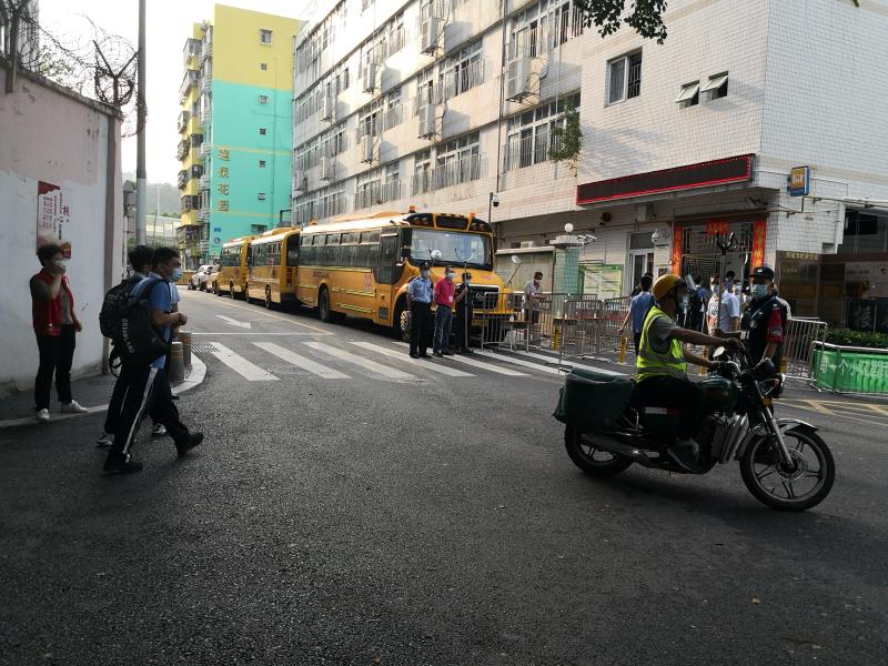 现场,莲花社区工作人员、莲花社区警务室民警和社区志愿者早早到位,按照工作部署,全部就位引导学生排好队伍、按部就班的完成进入校园的各项工作,平安进入校园。在疫情防控期间,学生们终于迎接新的一学期的到来。