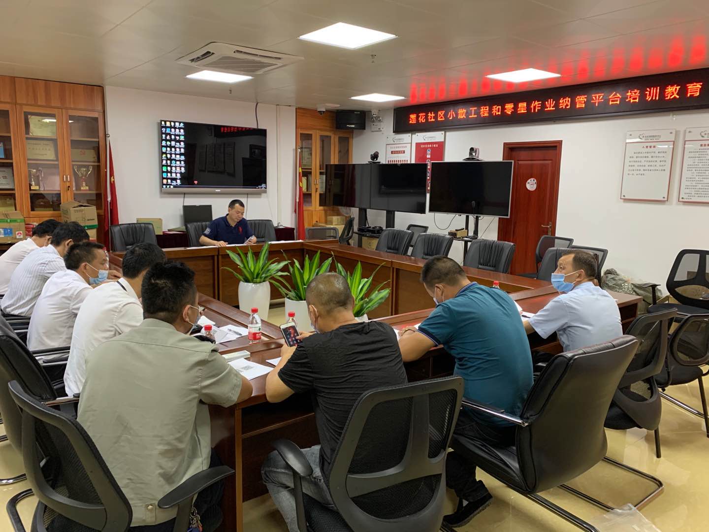 为了更好规范小散工程和零星作业,并做好小散工程和零星作业的纳管工作。2020年5月14日下午,莲花社区组织辖区物业单位负责人及相关工作人员,到莲花社区会议室开展莲花社区小散工程和零星作业纳管平台培训教育讲座。