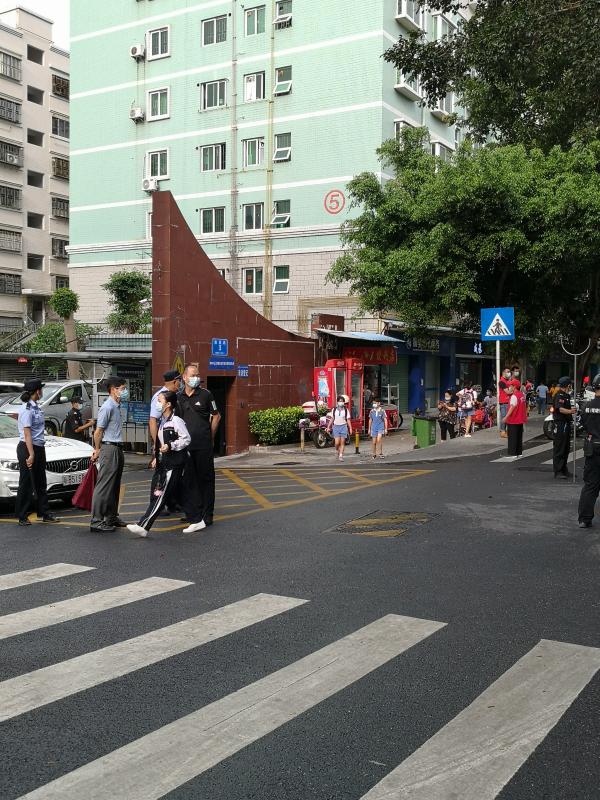 5月18日是小学1到3年级的复学日,为了做好在疫情防控期间学生的复学工作,切实保障学生平安返校和校园稳定安全。2020年5月18日早上7点,莲花社区组织工作人员与志愿者,联合莲塘派出所民警与莲城学校家委会成员一起助力莲城学校1到3年级的学生复学工作,与学校工作人员一起维持现场秩序,确保学生平安返校。莲塘派出所副所长刘晓林、莲塘街道民生事务部副部长何燕到现场指导。