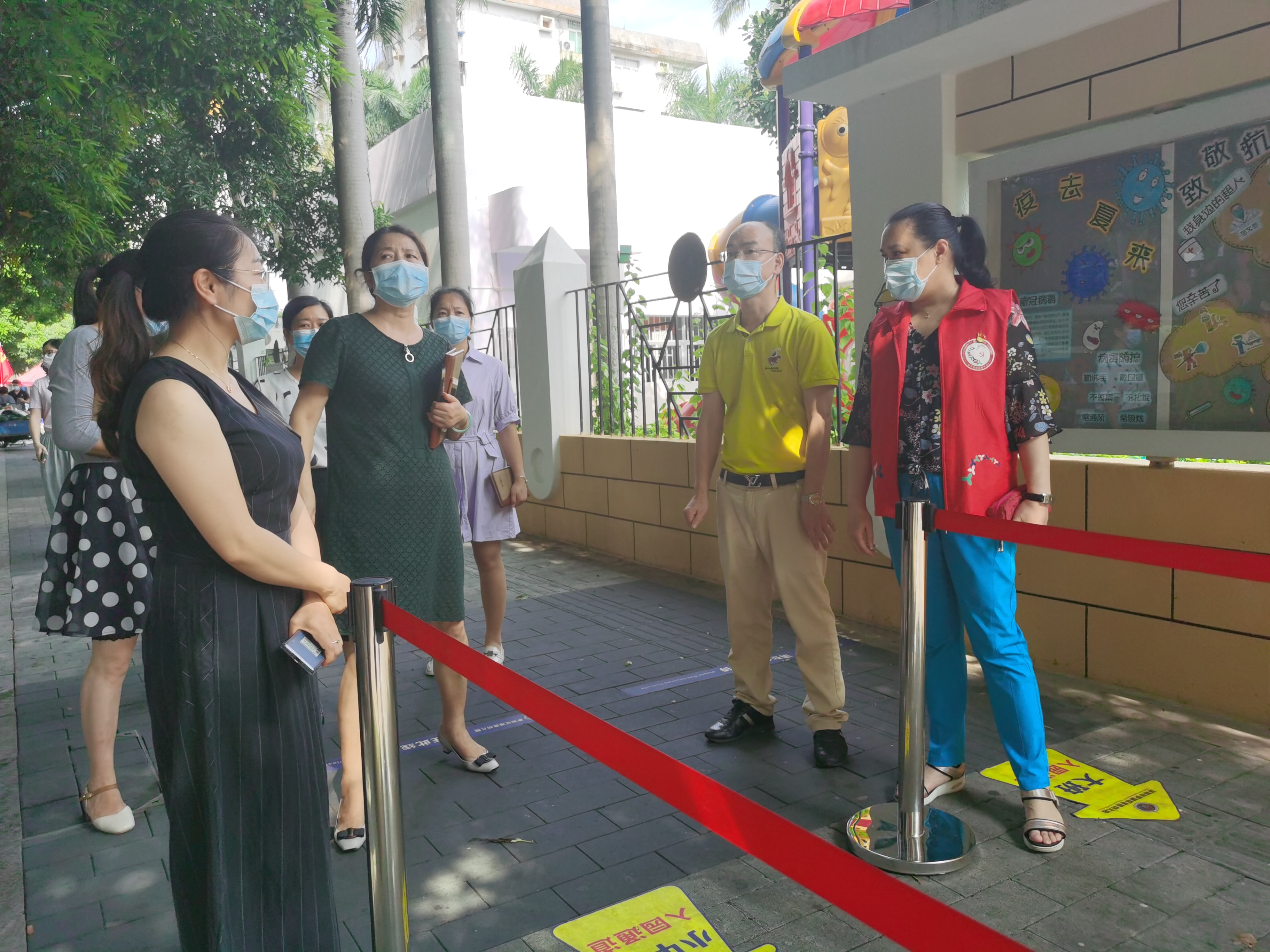 为了做好疫情防控期间,幼儿园的复学工作。2020年5月29日下午,莲花社区党委书记陈建怡陪同莲塘街道党工委委员、民生事务部部长陈新辉走访莲塘房地产幼儿园检查指导幼儿园复学前的各项准备工作。