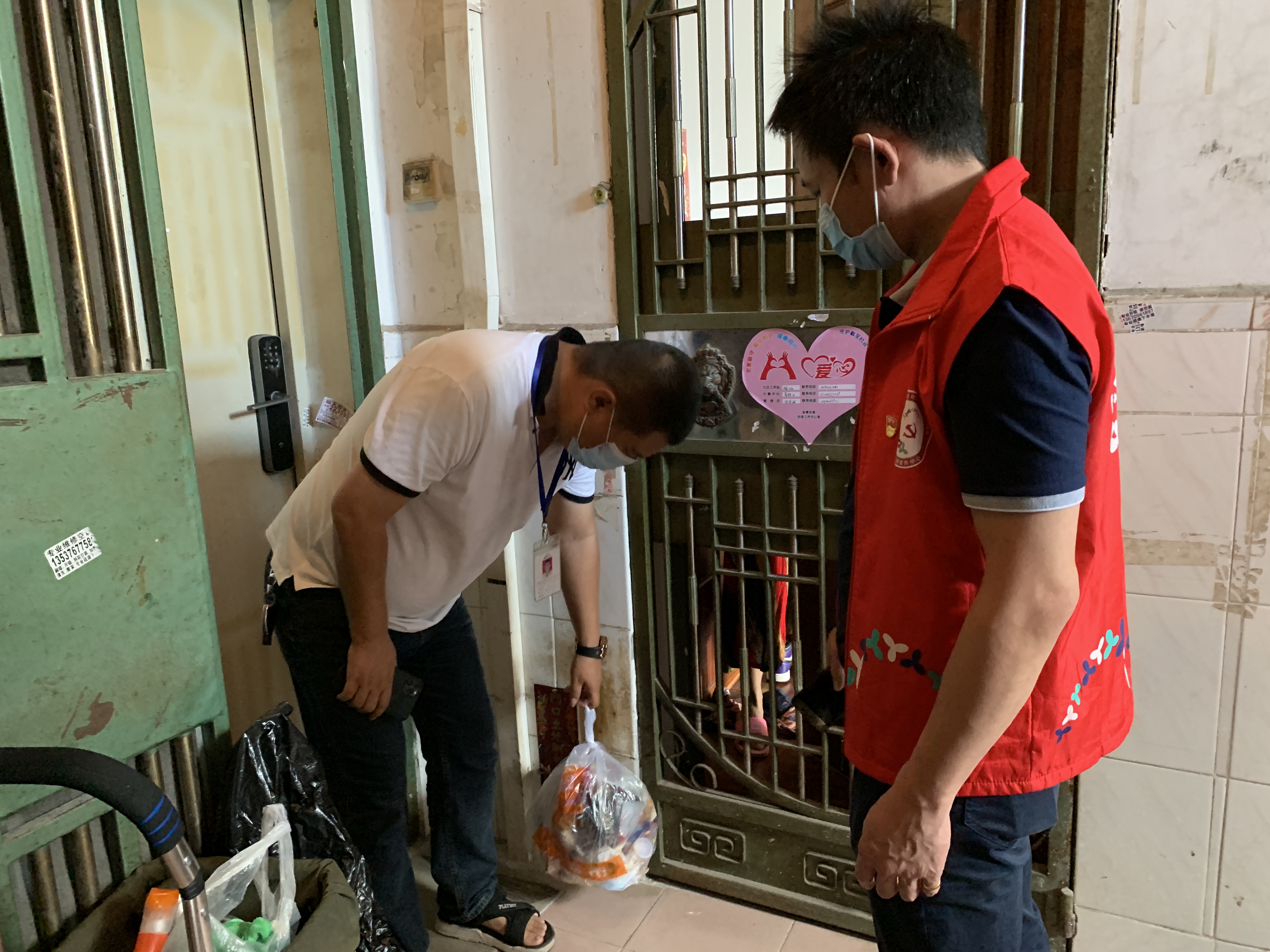 社区党委副书记购买水果和携带疫情防控物资到居家隔离户进行慰问,并深入了解和关心居家隔离人员身体状况、体温情况、生活有无需求等。据了解,居家隔离人员身体状况良好,体温正常,生活并无其他需求。另外,社康医护人员为居家隔离户测量体温,询问健康等。社区工作人员还告知居家隔离人员,如有什么需求可以先与物业服务中心联系,物业服务中心会为他们送外卖、快递等,也会为他清理放在门外的生活垃圾等。