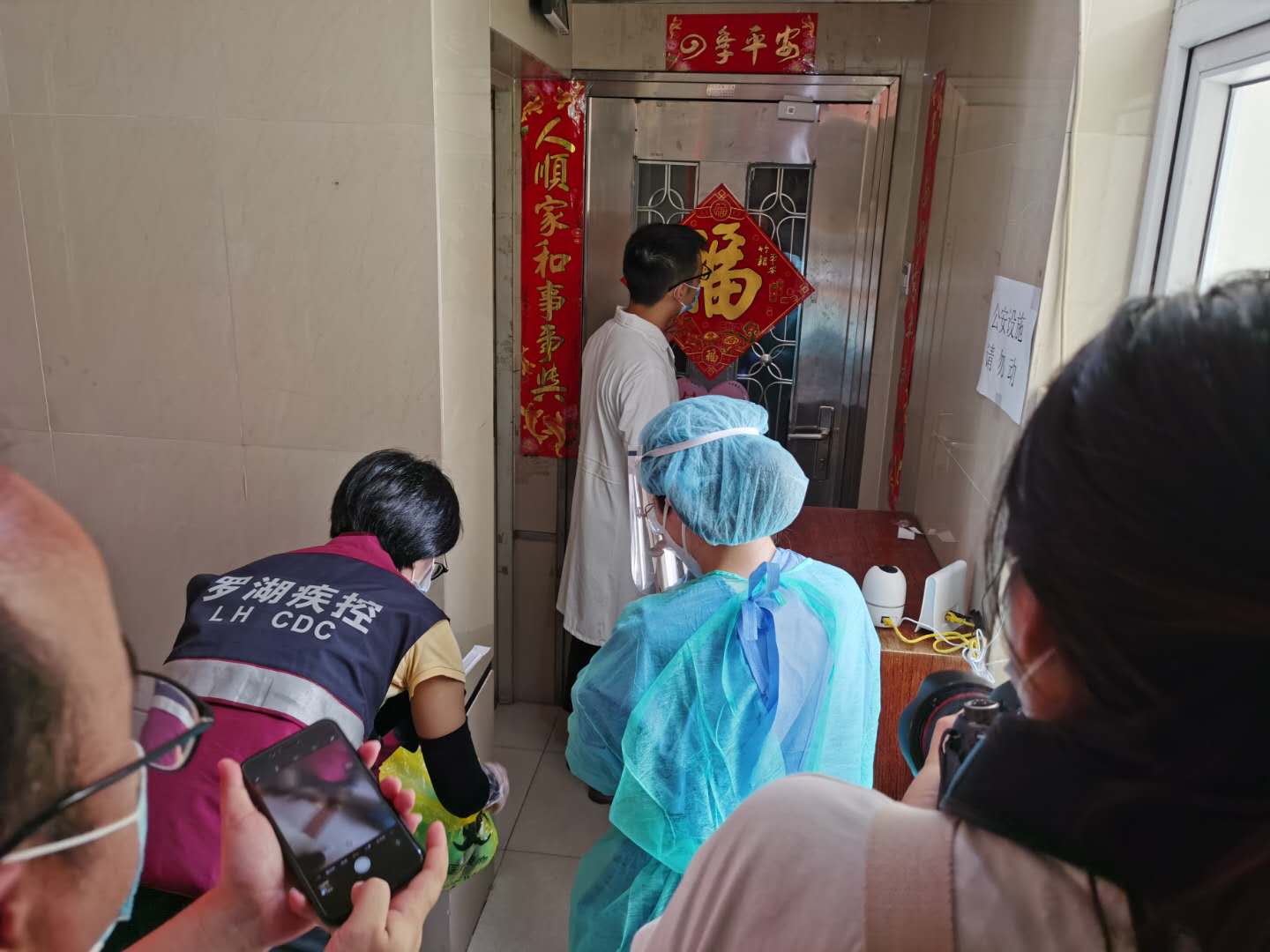现场,罗湖区疾控部门的工作人员,先为他测量体温,核查居家隔离人员信息,并按照正常程序,为居家隔离人员做核酸检测,并告知要等核酸检测报告出来后,才能解除居家隔离,届时就可以正常走动。