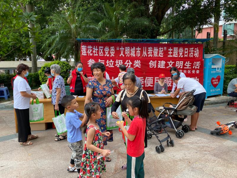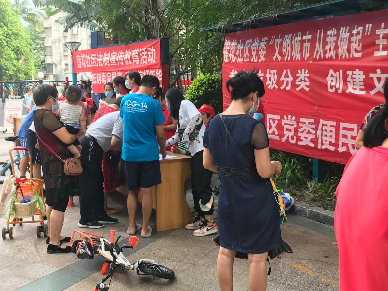 为提高居民群众对垃圾分类的认识及正确掌握垃圾分类的方法,让社区居民了解分类、学会分类、主动分类,进一步做好垃圾分类宣传工作,2020年8月31日下午,莲花社区党委组织全体工作人员,到名骏豪庭小区休闲广场,开展垃圾分类宣传教育活动。