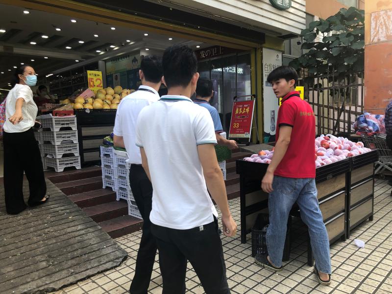 莲花社区党委书记首相走访了辖区超市,针对超市超线经营的情况,马上要求超市方做出整改,要求超线摆放的物品务必马上搬进去,另外要求超市方要保持门店范围内的路面整洁。现在是创建全国文明城市时期,务必要按照创文的标准,保持好紧张态势,认真落实创文的各项工作。